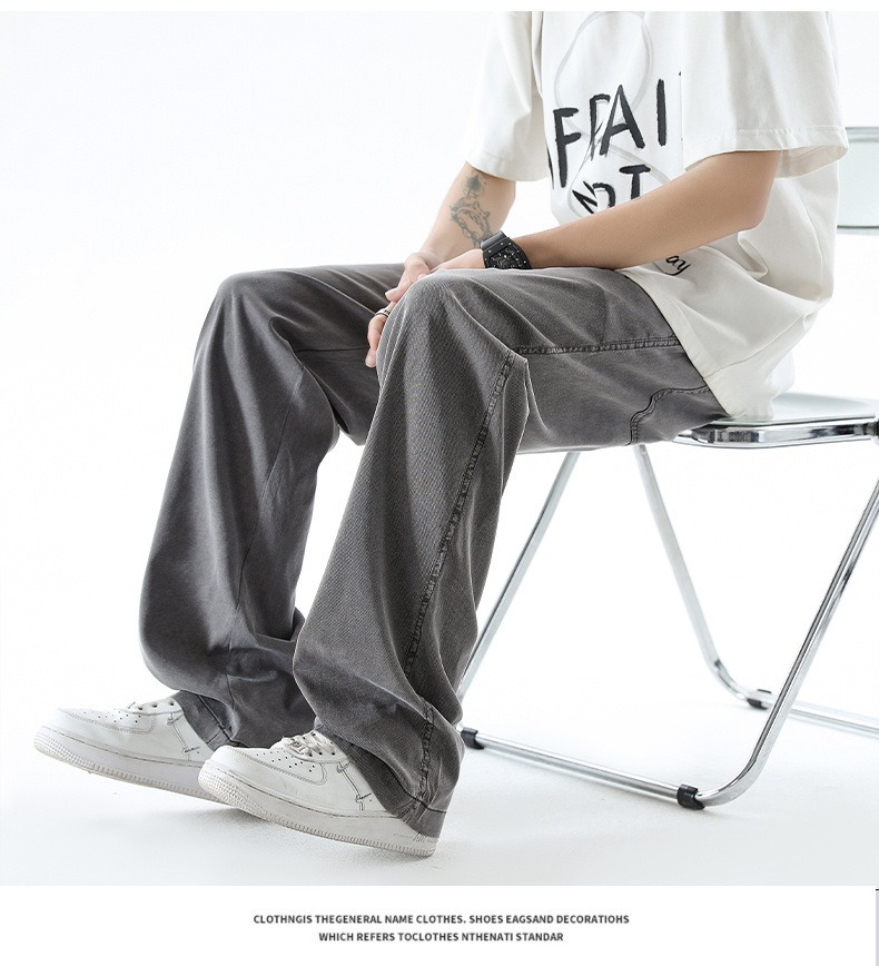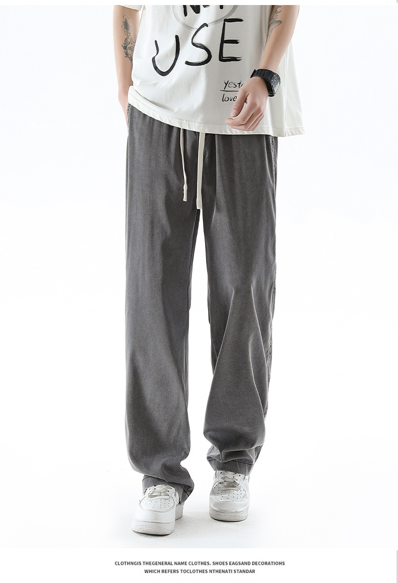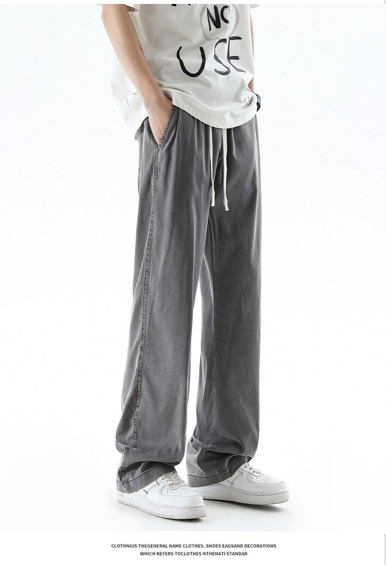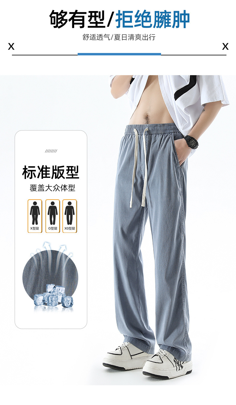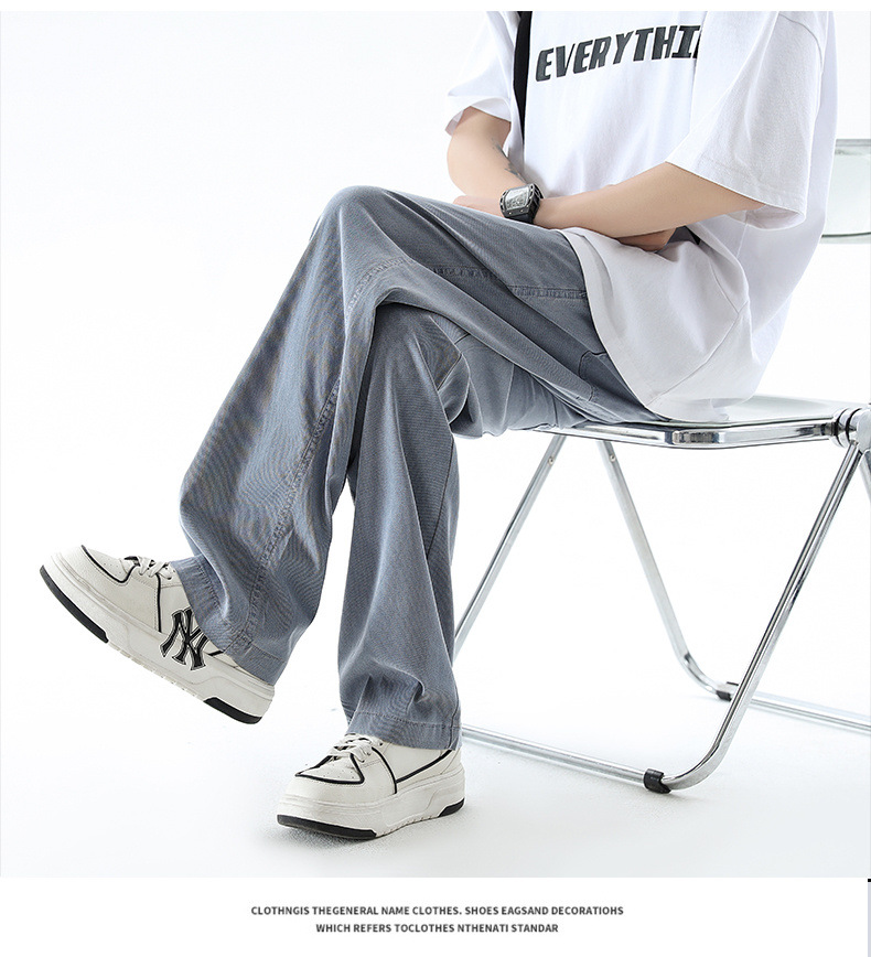 텐셀 청바지 남성 봄과 여름 느슨한 한국 스타일 트렌디 브랜드 남성 레트로 스트레이트 홍콩 스타일 아이스 실크 남성 캐주얼 바지스토어 가기