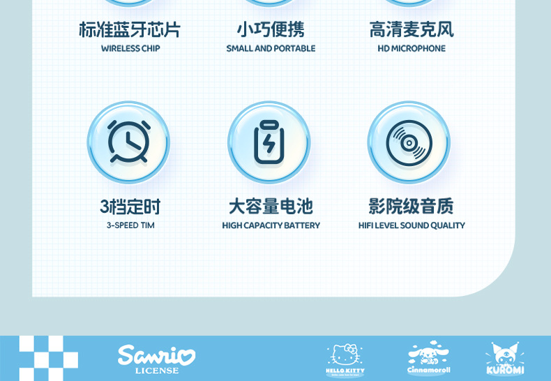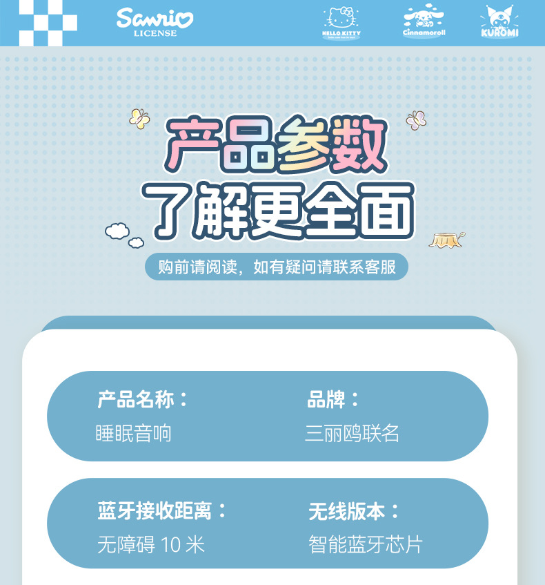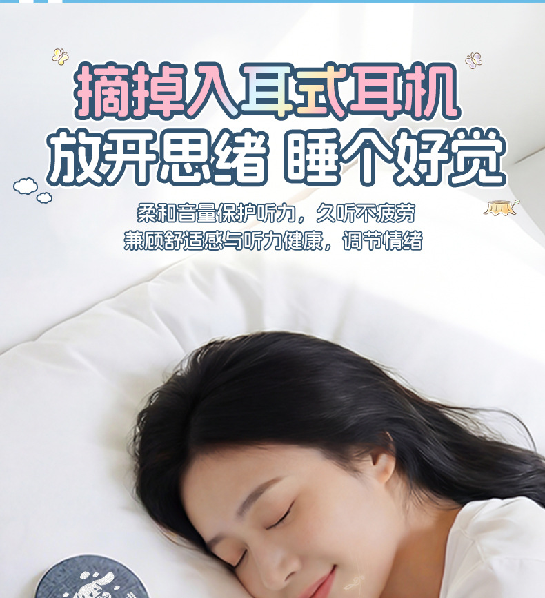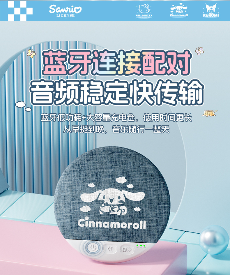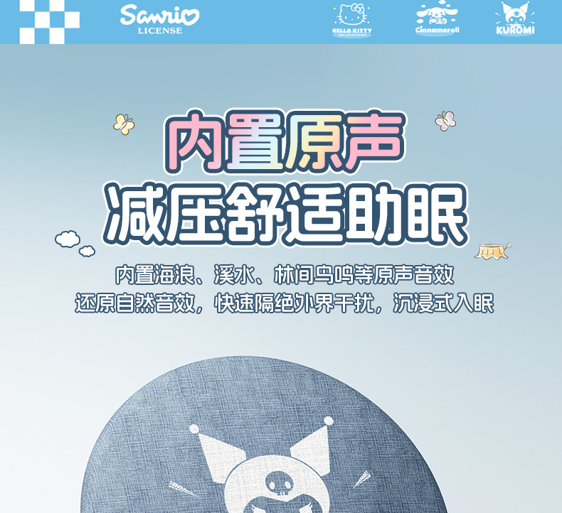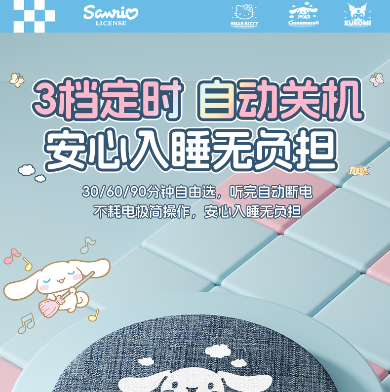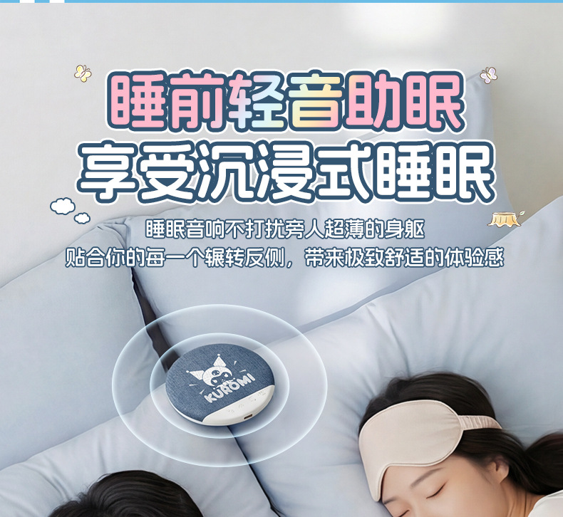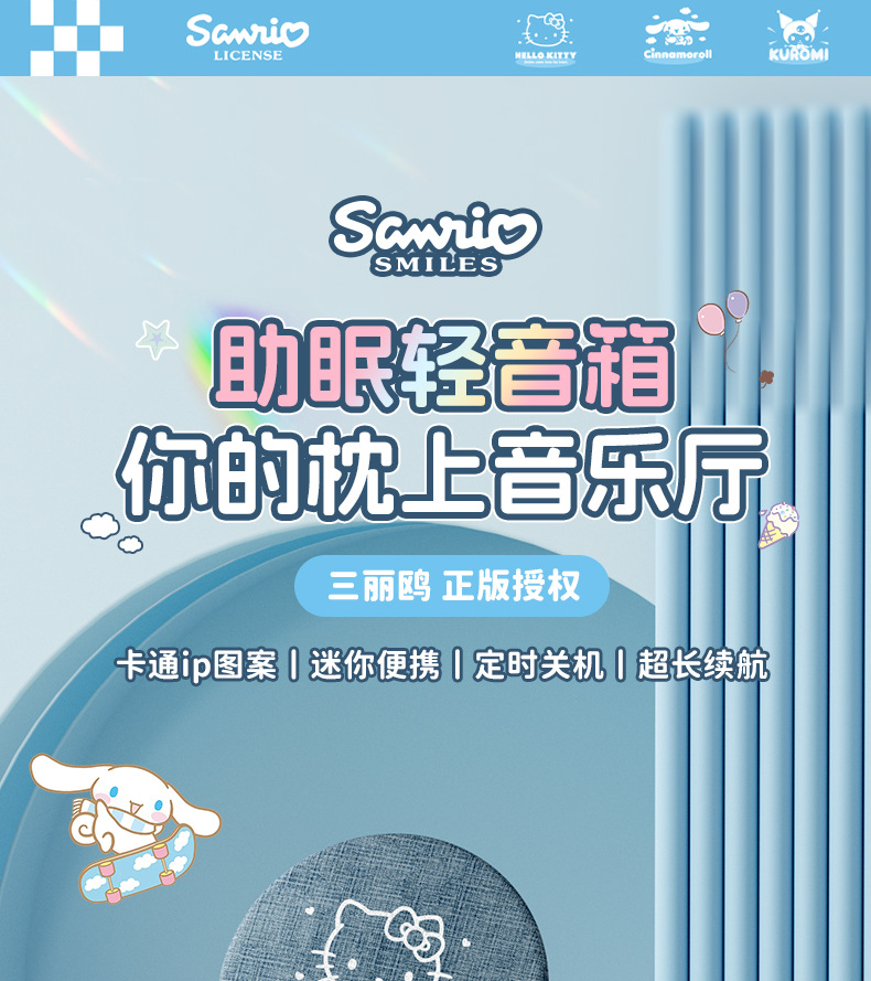 산리오 S1 베개형 수면 스피커, 베개 아래 스피커, 고음질, 다기능 블루투스 스피커, 무소음스토어 가기