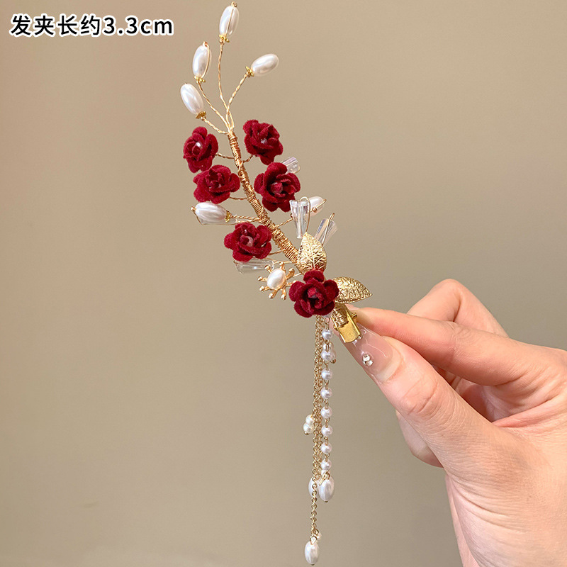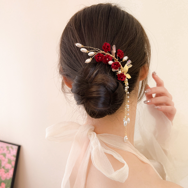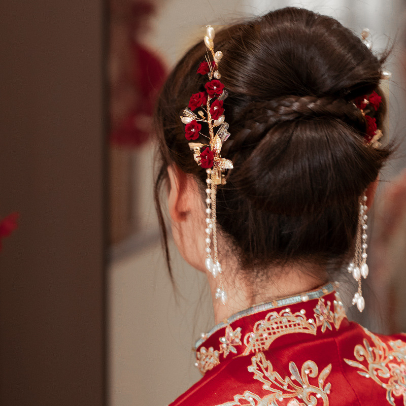 신년 시우허 원피스 헤드웨어 여성 신부 건배 원피스 헤어 액세서리 2024 신식 대기 새 중국 약혼 청삼 헤어핀