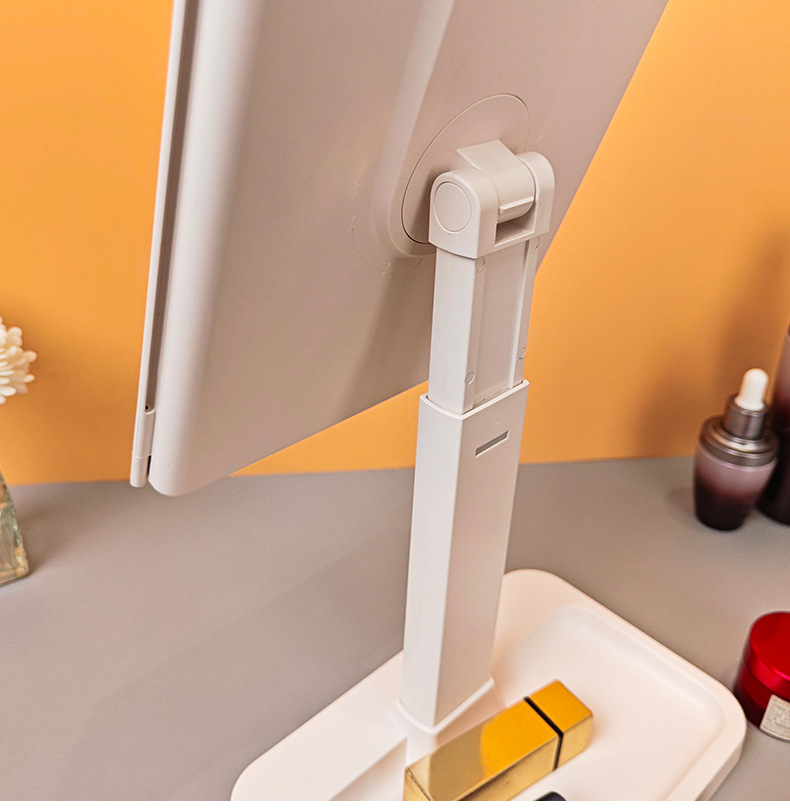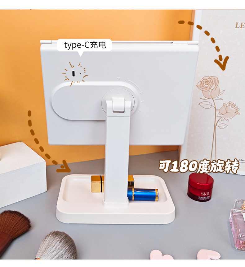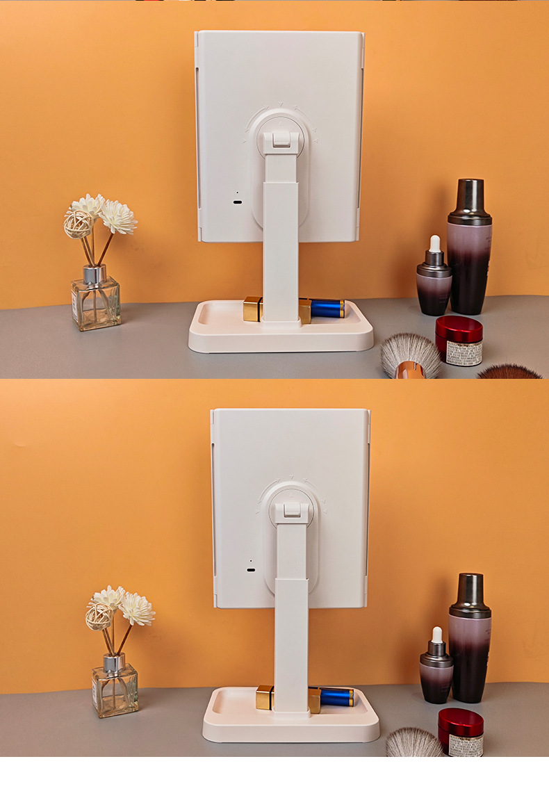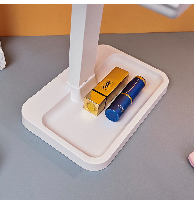• 피부 질감 - 3색 조명 조절 가능 - 충전식 모델 + 하단 수납함 - 모서리가 둥글게 처리됨