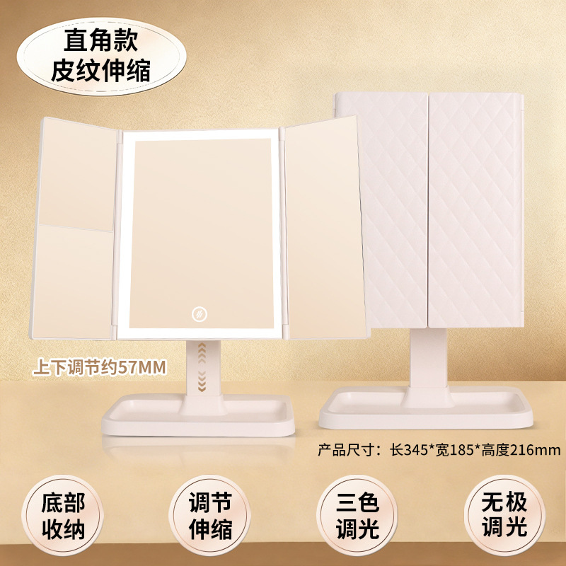• 둥근 모서리 가죽 질감 - 3색 조명 조절 가능 - 텔레스코픽 스타일 - 흰색