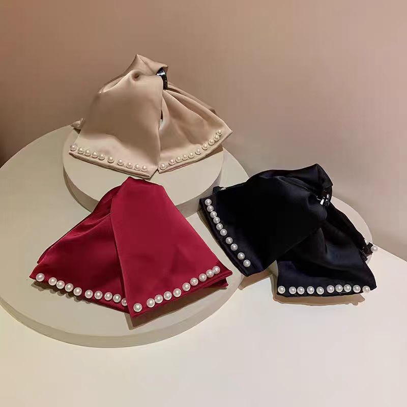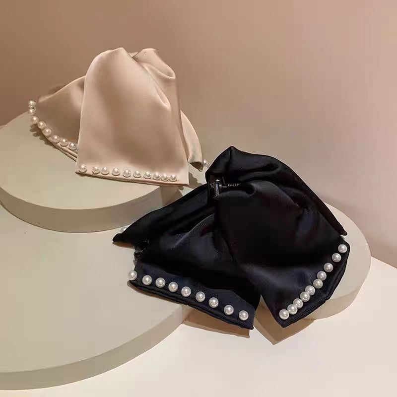 새로운 대형 진주 새틴 그랩 클립 우아한 올 매치 상어 클립 헤드 디스크 헤어 클립 고급 헤드웨어 프렌치 스타일스토어 가기