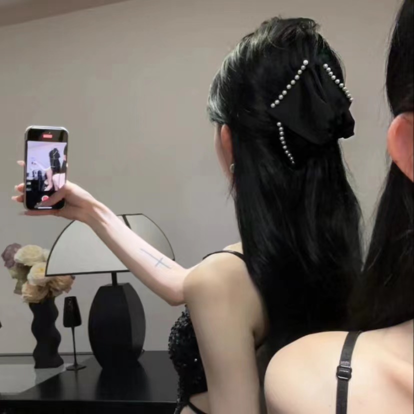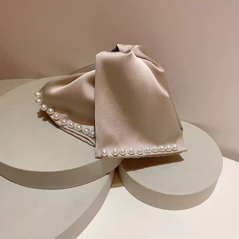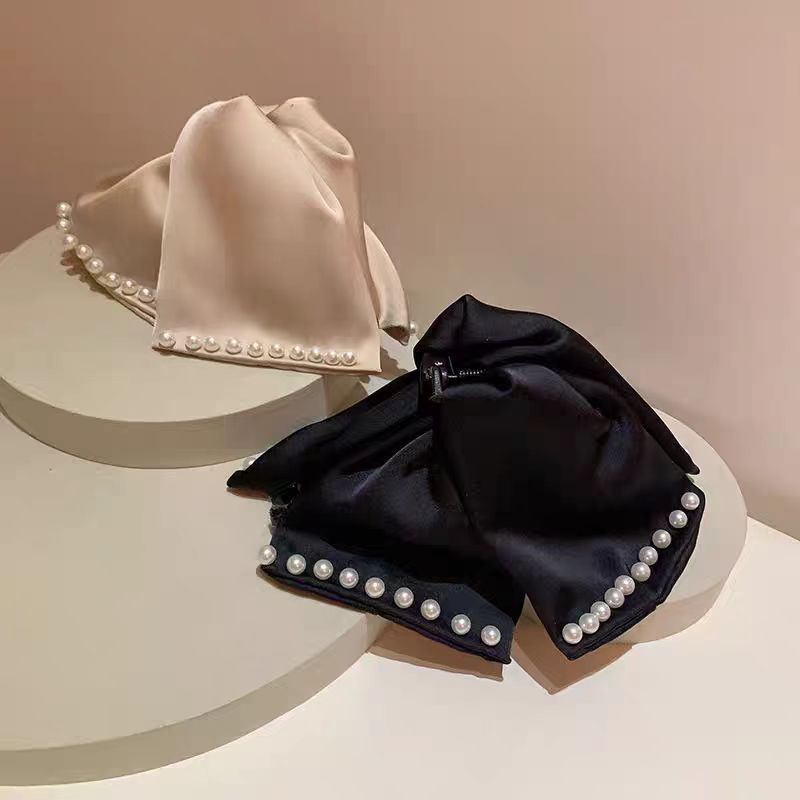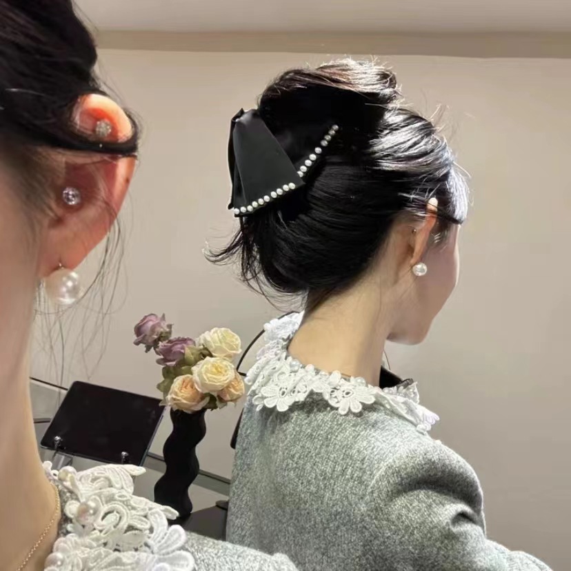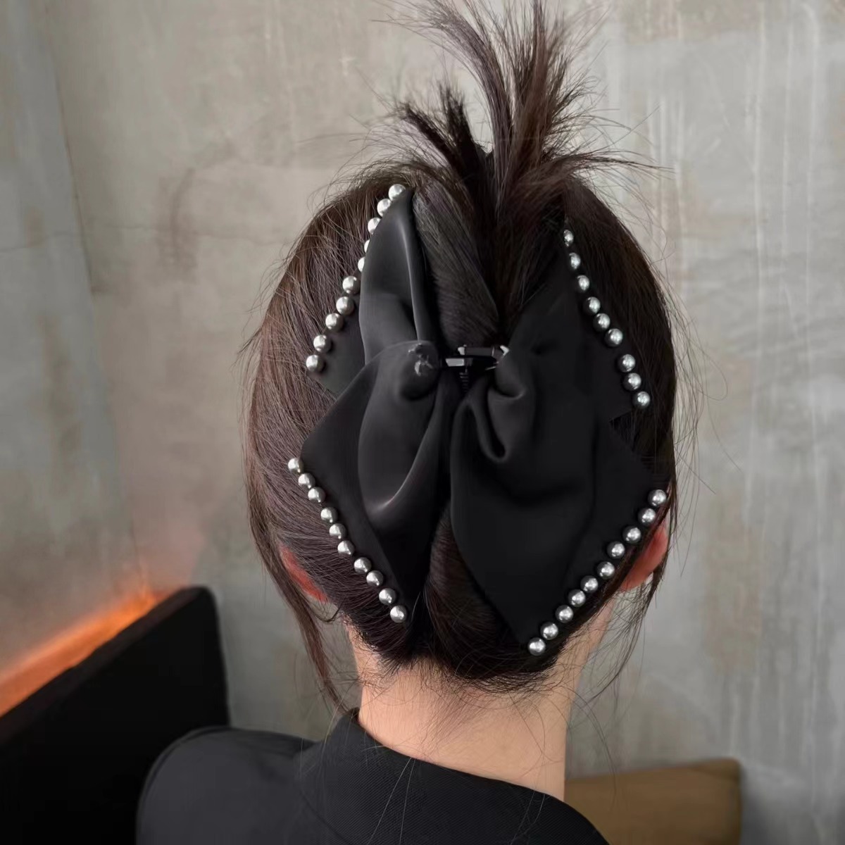 새로운 대형 진주 새틴 그랩 클립 우아한 올 매치 상어 클립 헤드 디스크 헤어 클립 고급 헤드웨어 프렌치 스타일