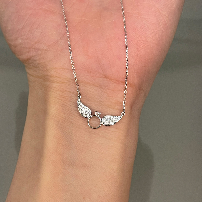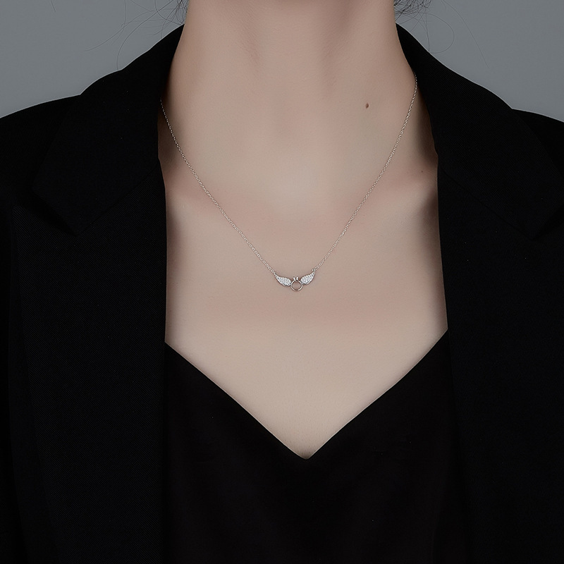 천사 날개 한국 스타일 우아한 지르콘 다이아몬드 반지 펜던트 콜라 본 체인 다이아몬드 짧은 목걸이 액세서리 여성용 보석스토어 가기