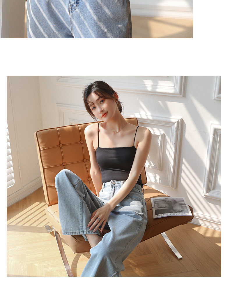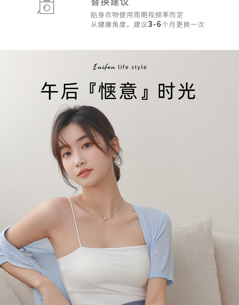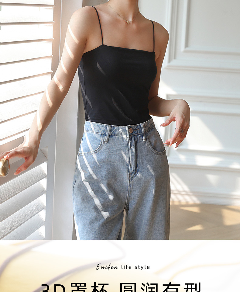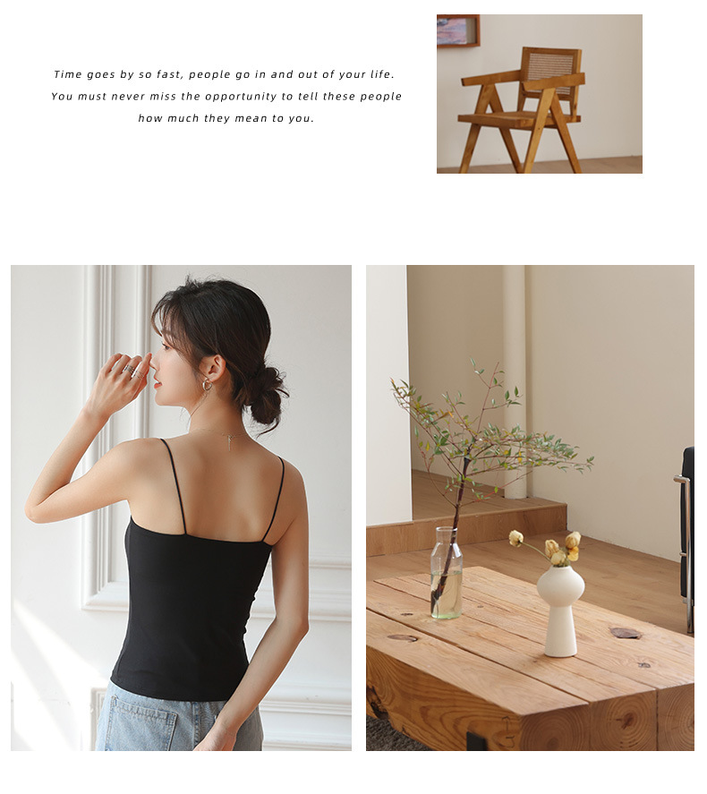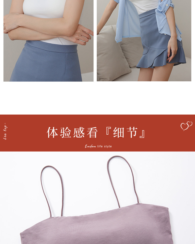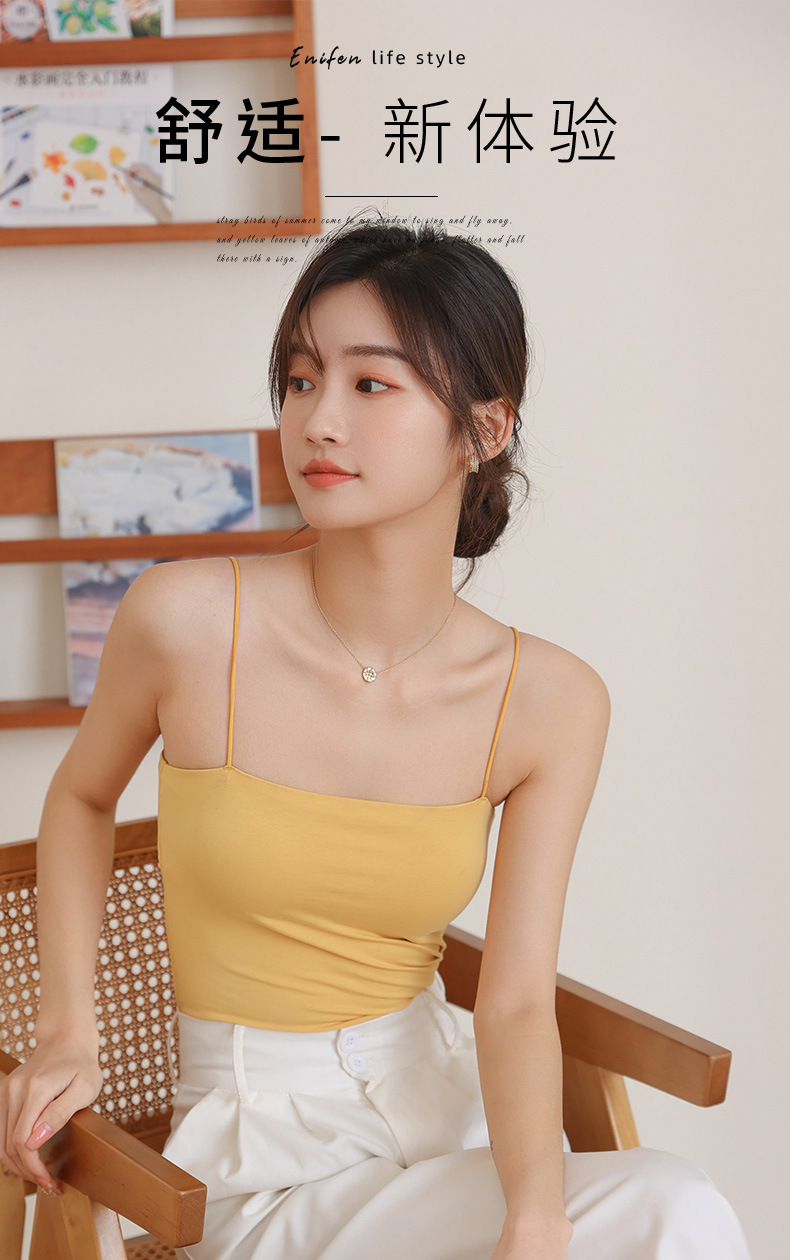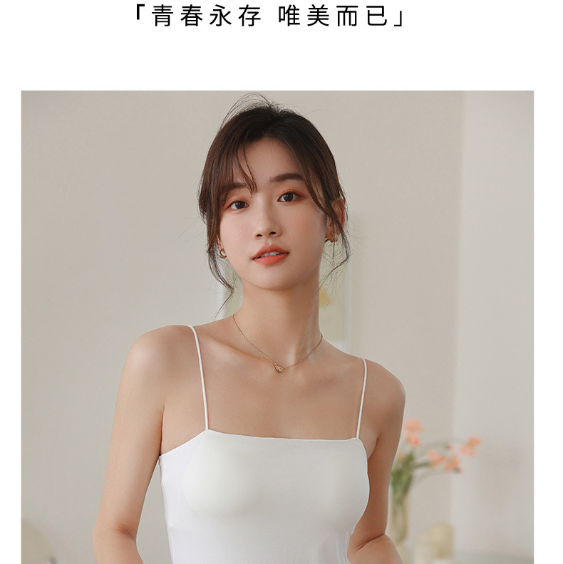 102 작은 슬링 여성용 흰색 조끼 스타일 브라, 가슴 패드 2024 새로운 외상베이스 탑