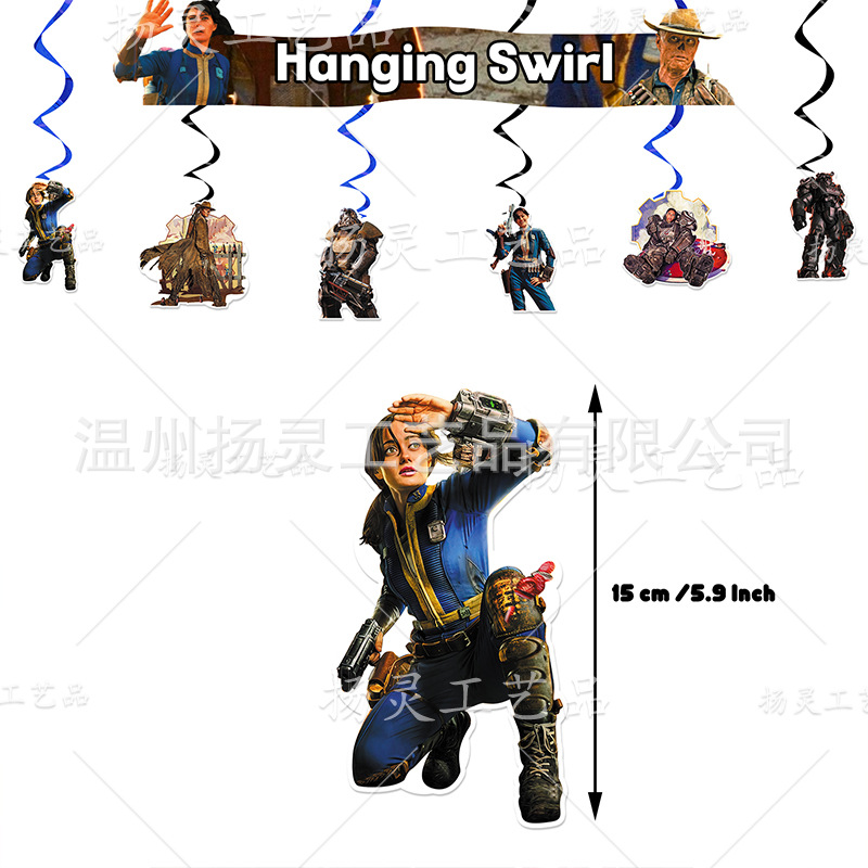 1 set Party Spirals Decor (6 Hanging Cards+6 Single Spirals: 3 Black and 3 Blue)