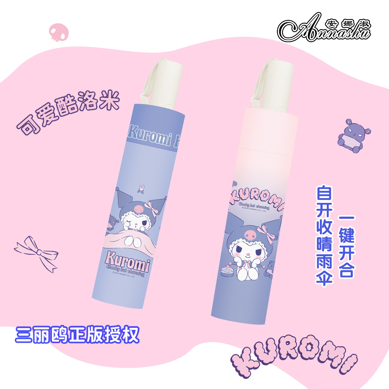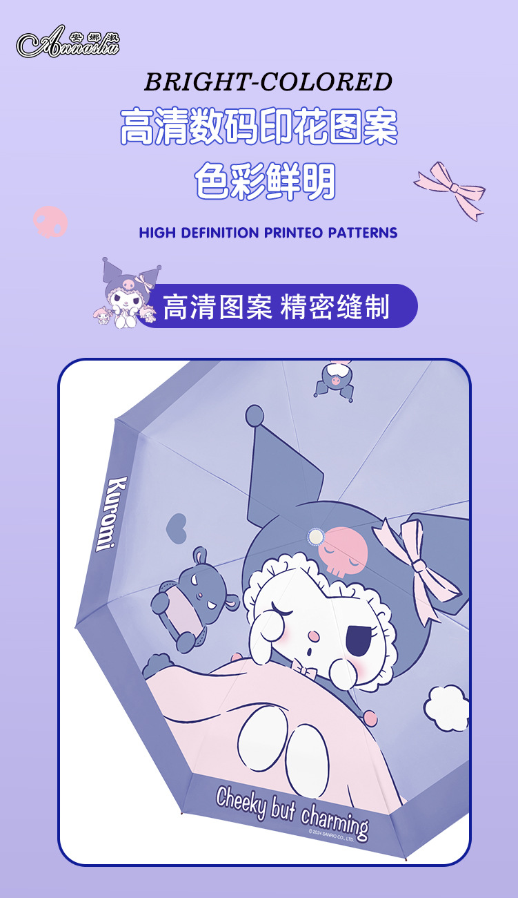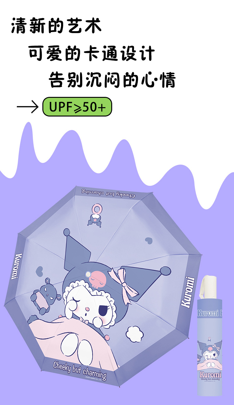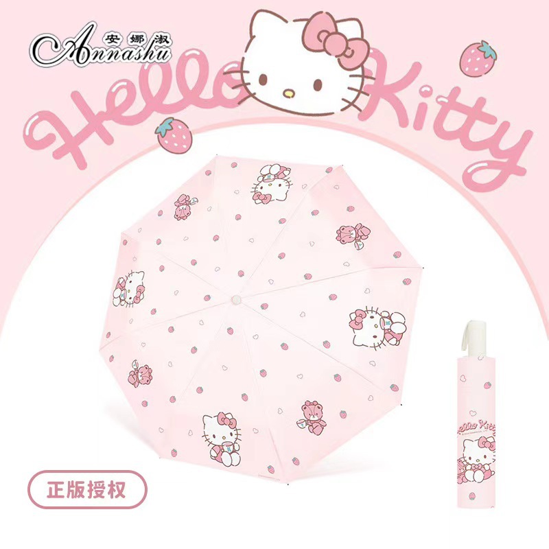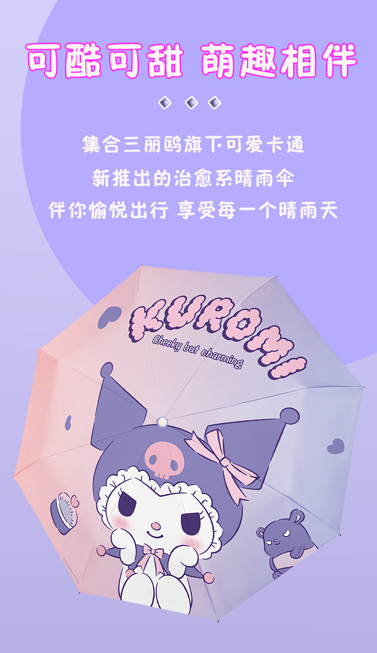 정품 산리오 우산 쿨 루오미 태양 우산 써니 비 이중 목적 태양 보호 자외선 보호 3 배 자동 우산