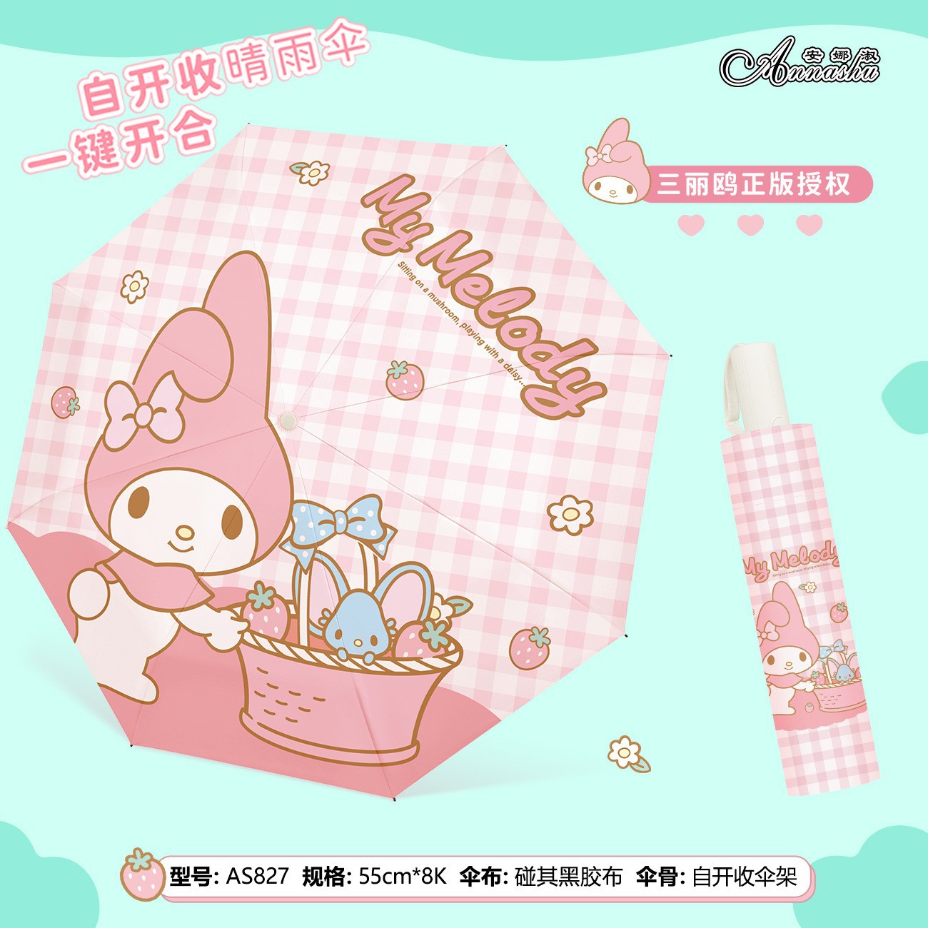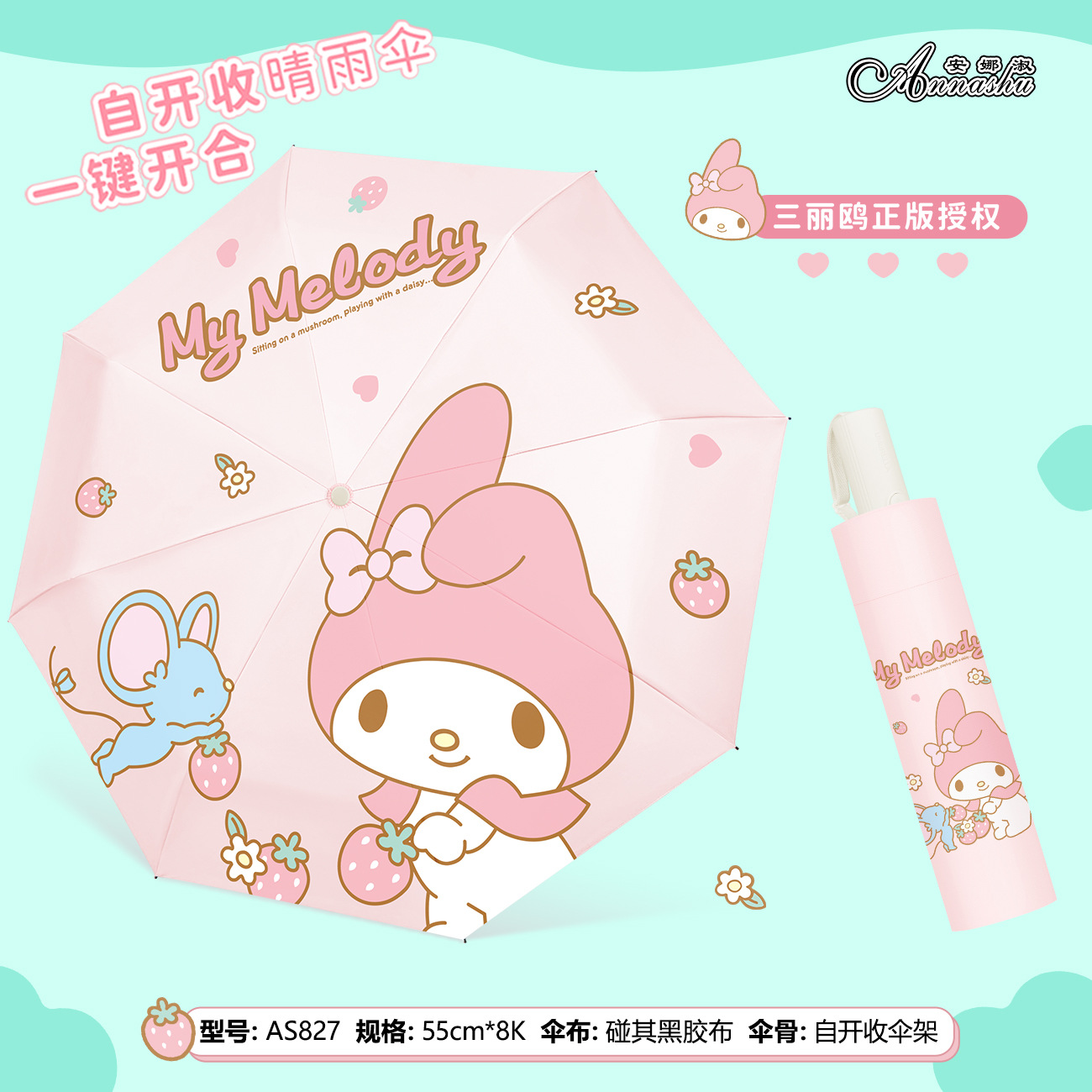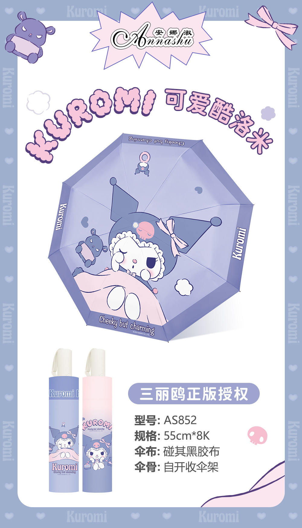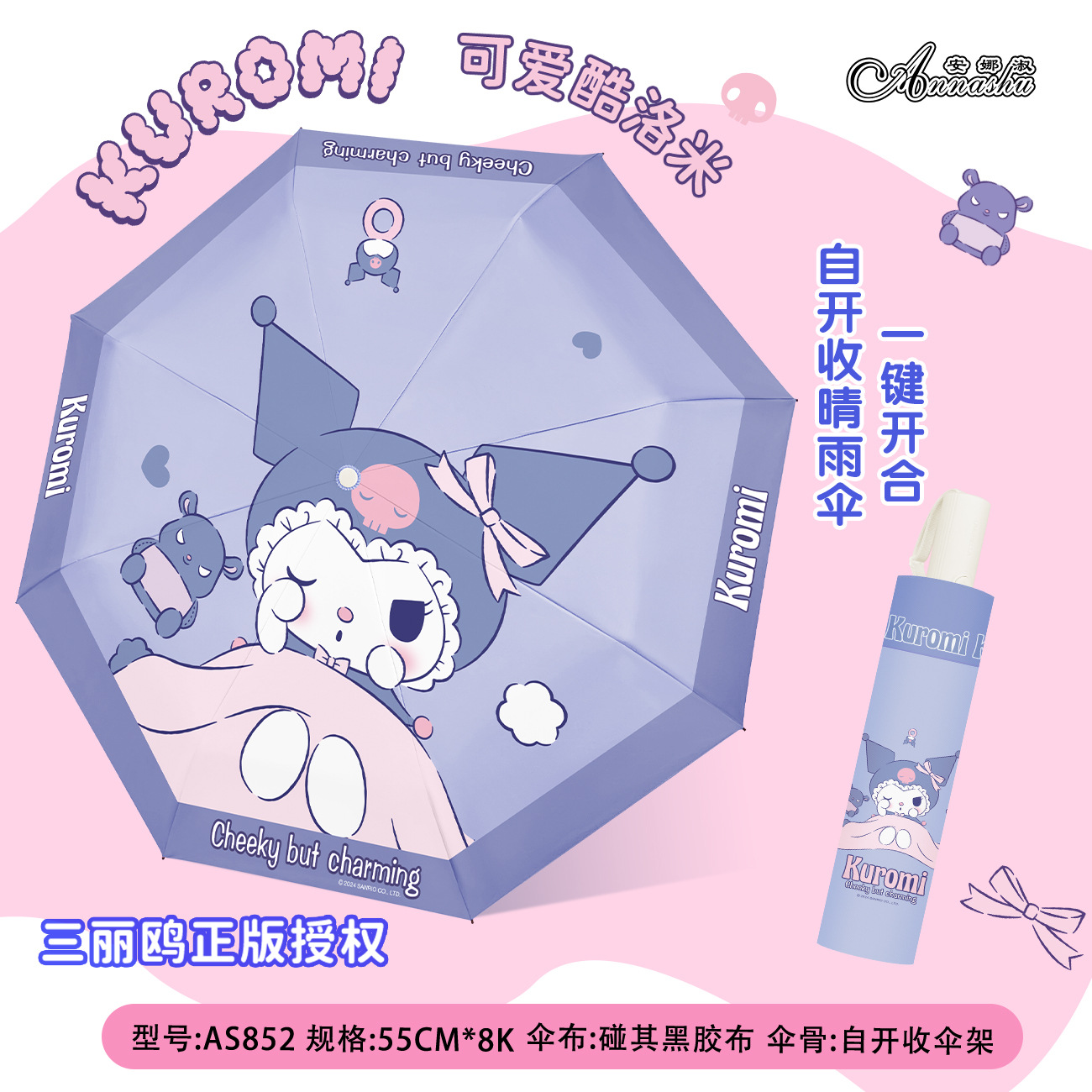 정품 산리오 우산 쿨 루오미 태양 우산 써니 비 이중 목적 태양 보호 자외선 보호 3 배 자동 우산