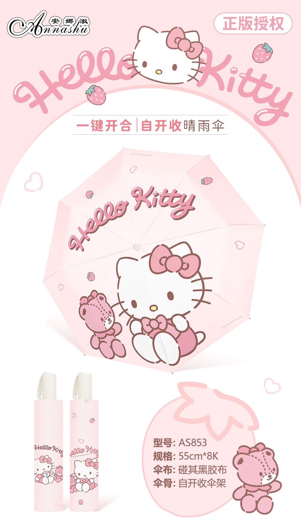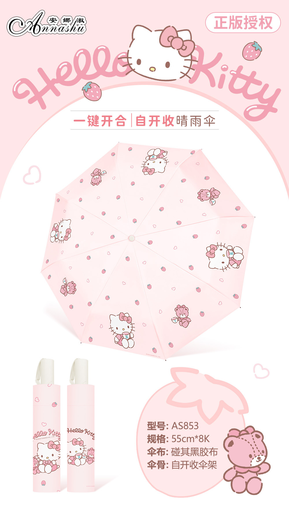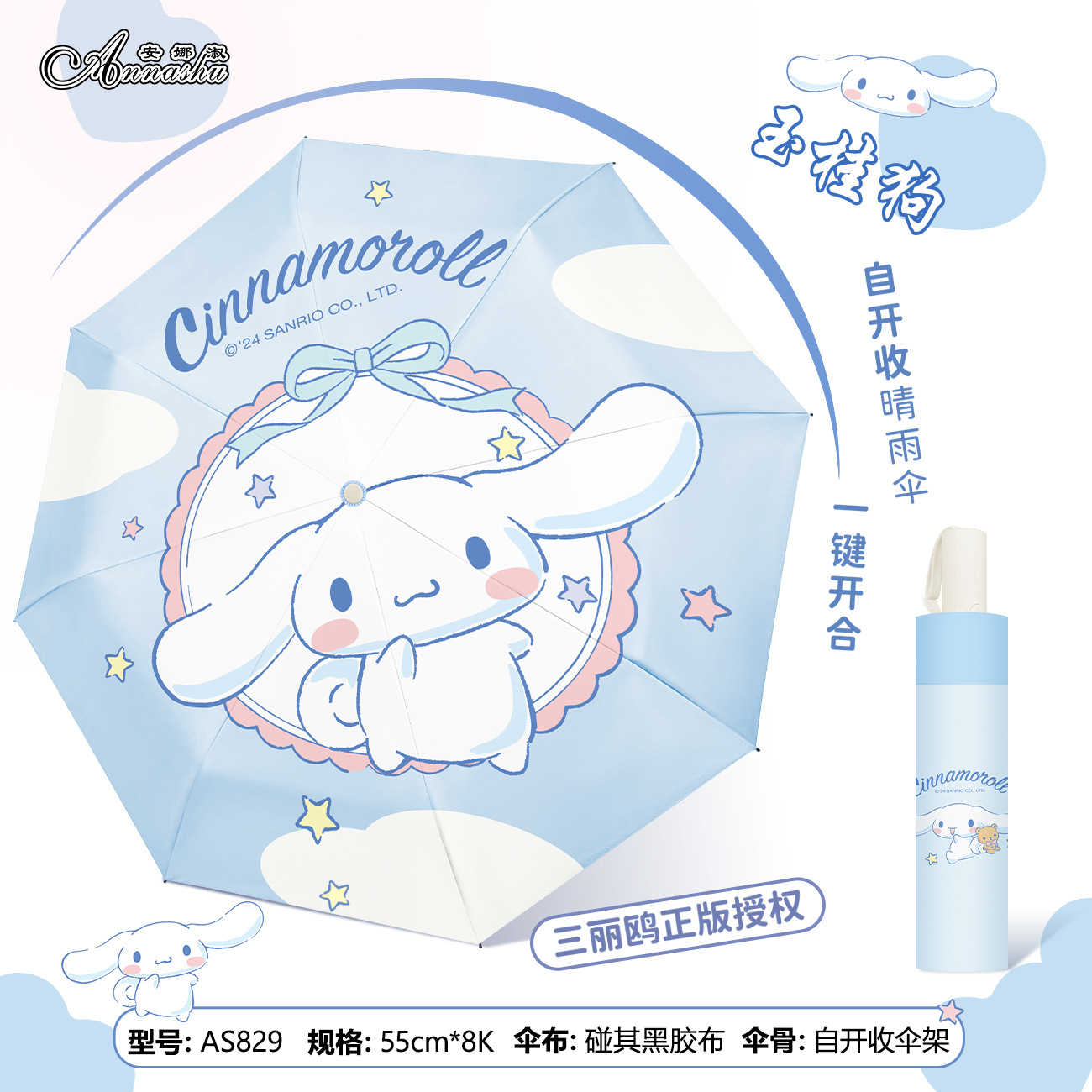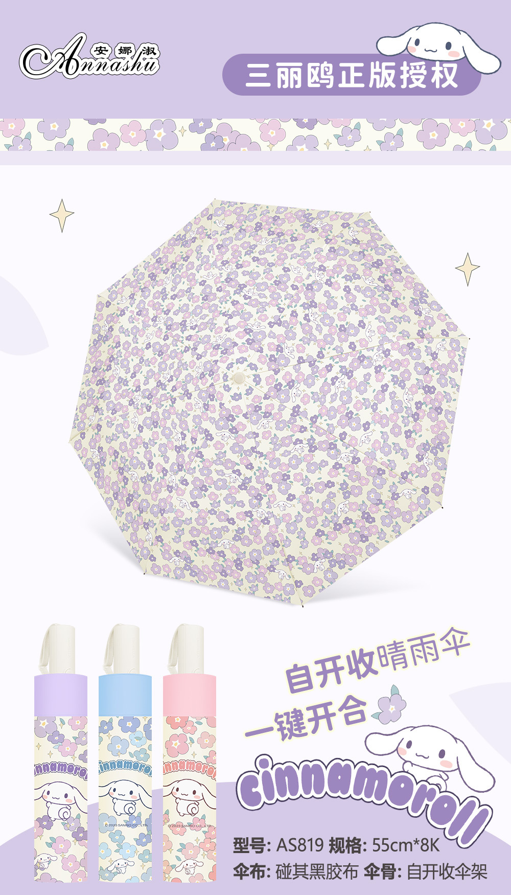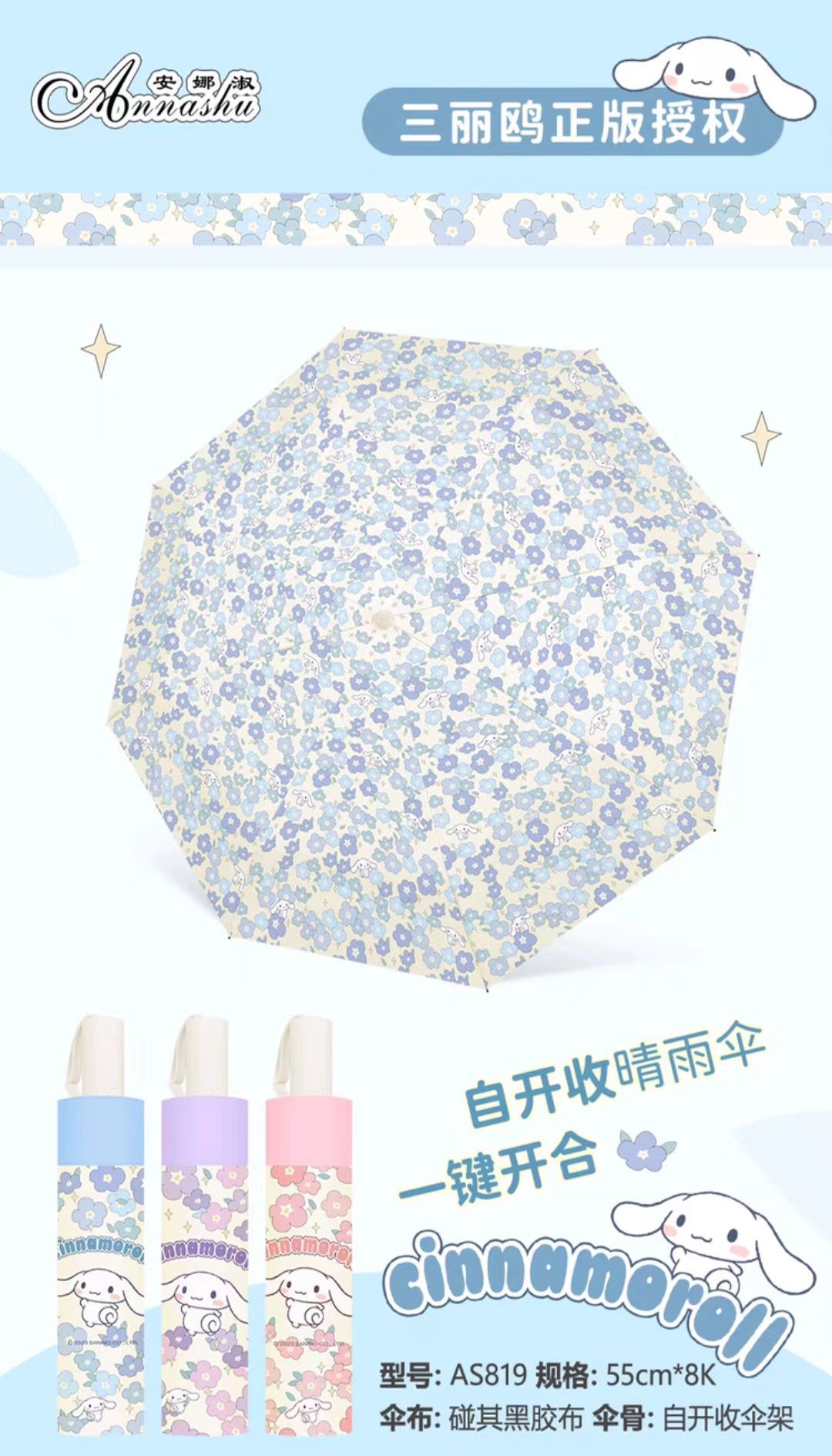 정품 산리오 우산 쿨 루오미 태양 우산 써니 비 이중 목적 태양 보호 자외선 보호 3 배 자동 우산스토어 가기