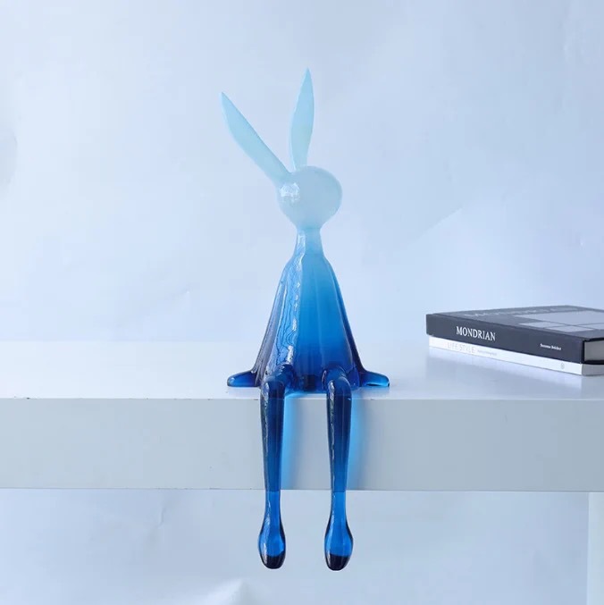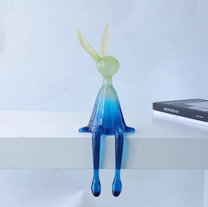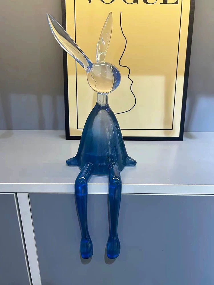북유럽 빛 명품 투명한 앉는 자세 매달려 발 토끼 장식품 책장 거실 TV 내각 입구 모델 방 창조적 인 장식