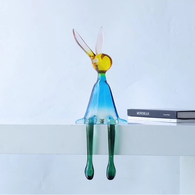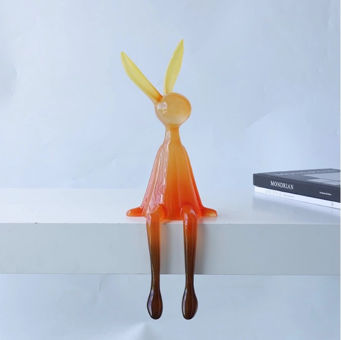 북유럽 빛 명품 투명한 앉는 자세 매달려 발 토끼 장식품 책장 거실 TV 내각 입구 모델 방 창조적 인 장식스토어 가기