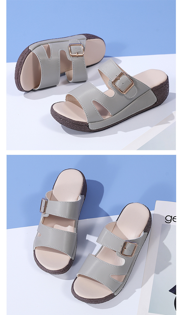 정품 가죽 샌들 여성의 2024 여름 쐐기 미끄럼 방지 부드러운 바닥 여성용 슬리퍼 세련된 플랫폼 두꺼운 하단 슬라이드