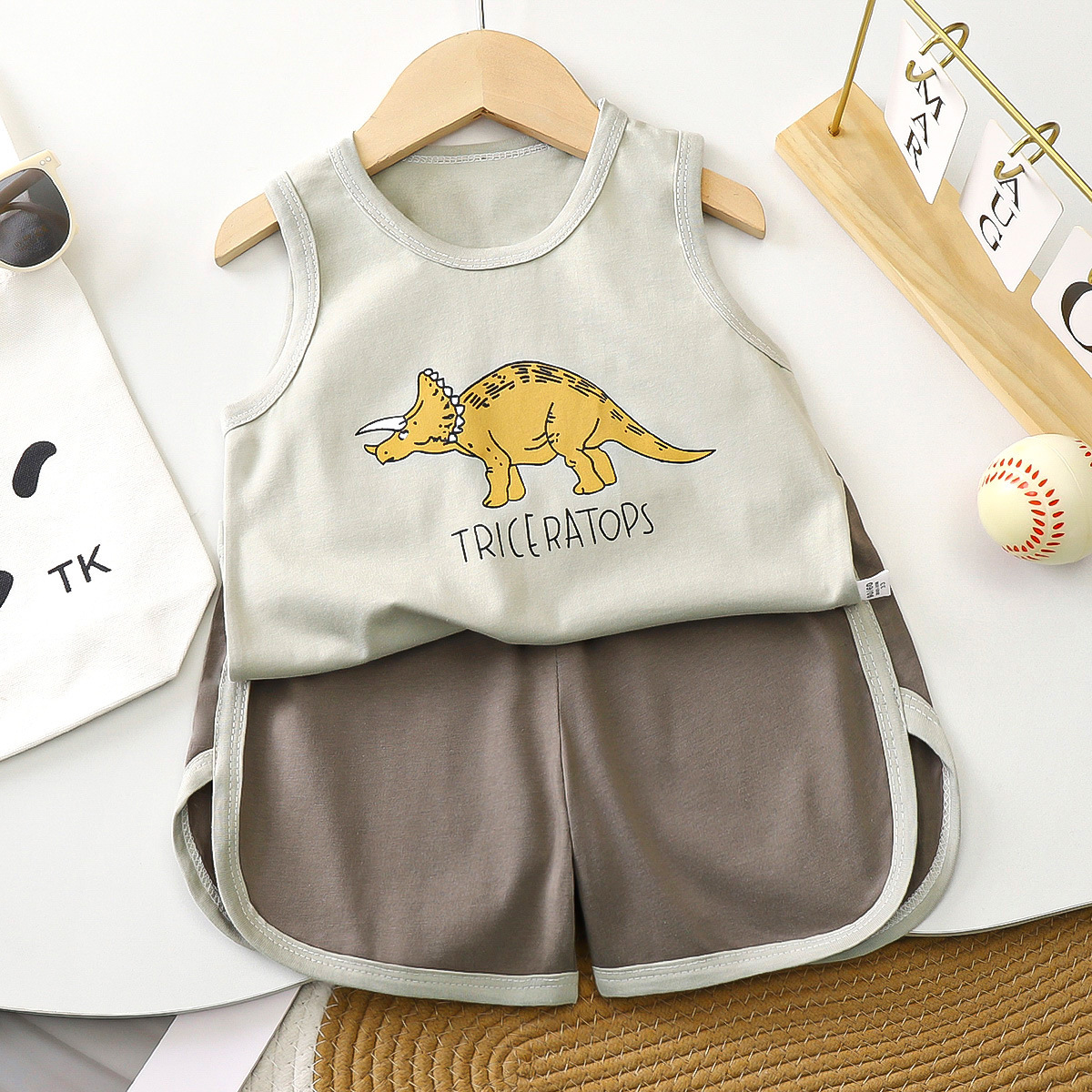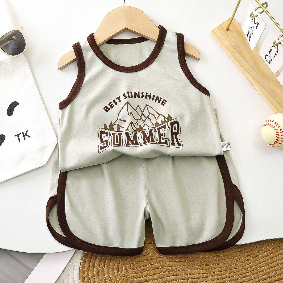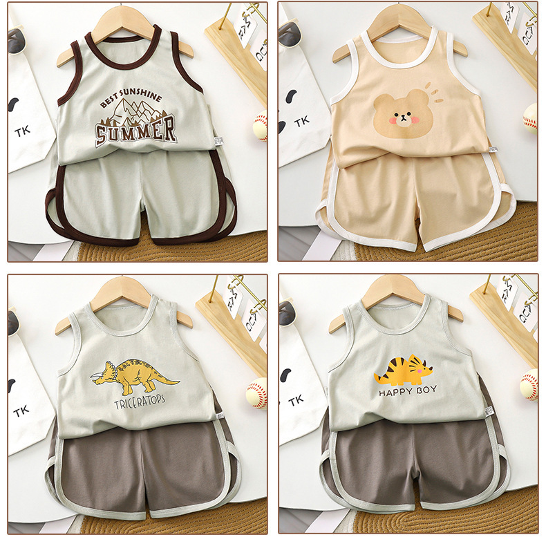 어린이 조끼 세트 에어컨 세트 여름 소년 한국 티셔츠 민소매 반바지 아기 홈 옷 아동복 도매