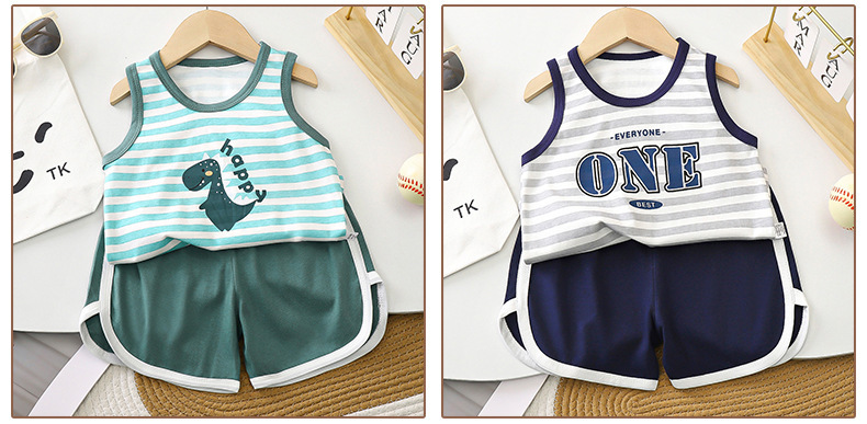 어린이 조끼 세트 에어컨 세트 여름 소년 한국 티셔츠 민소매 반바지 아기 홈 옷 아동복 도매스토어 가기