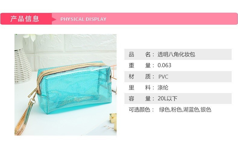 공장 직접 판매 투명 PVC 화장품 가방 대용량 레이저 휴대용 세척 가방 여행 편리한 저장 가방스토어 가기