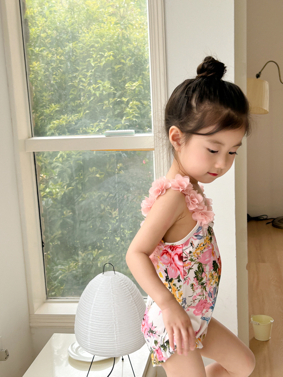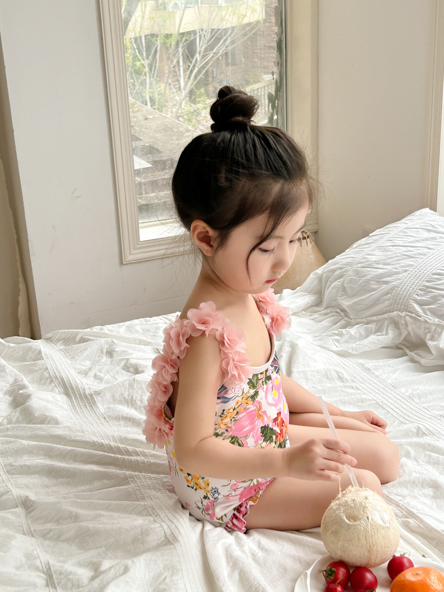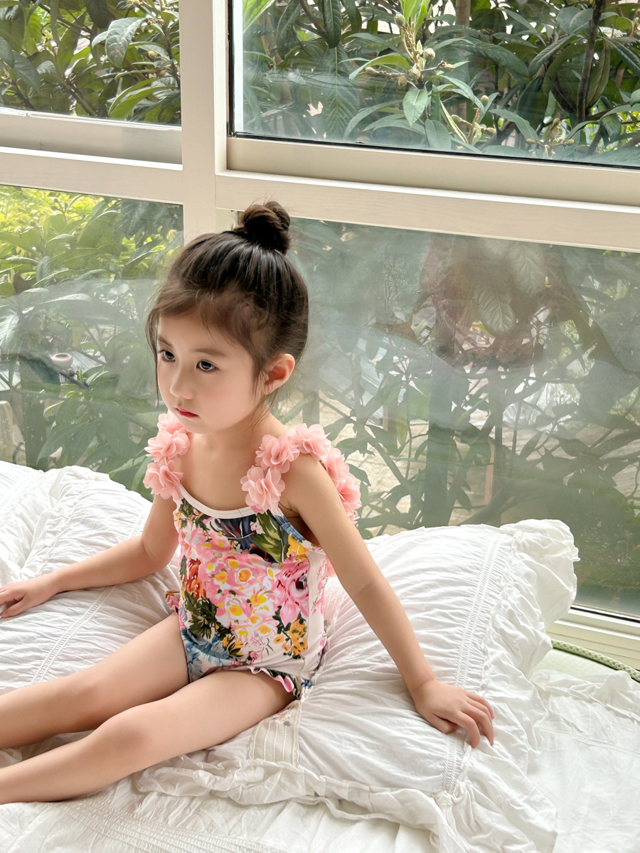 소녀 여름 수영복 2024 새로운 어린이 꽃 아름다운 등 수영복 어린 소녀를위한 빠른 건조 원피스 꽃 수영복