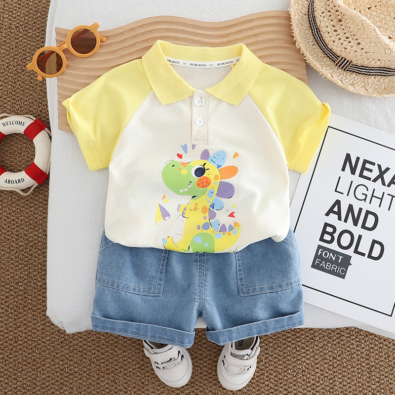 대외 무역 여름 짧은 소매 소년 옷깃 여름 서양 옷 잘 생긴 새 짧은 소매 세트 유행 아기 아동복스토어 가기