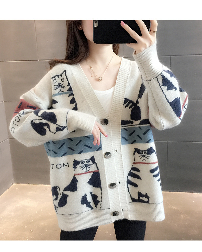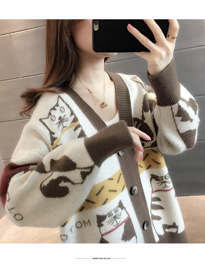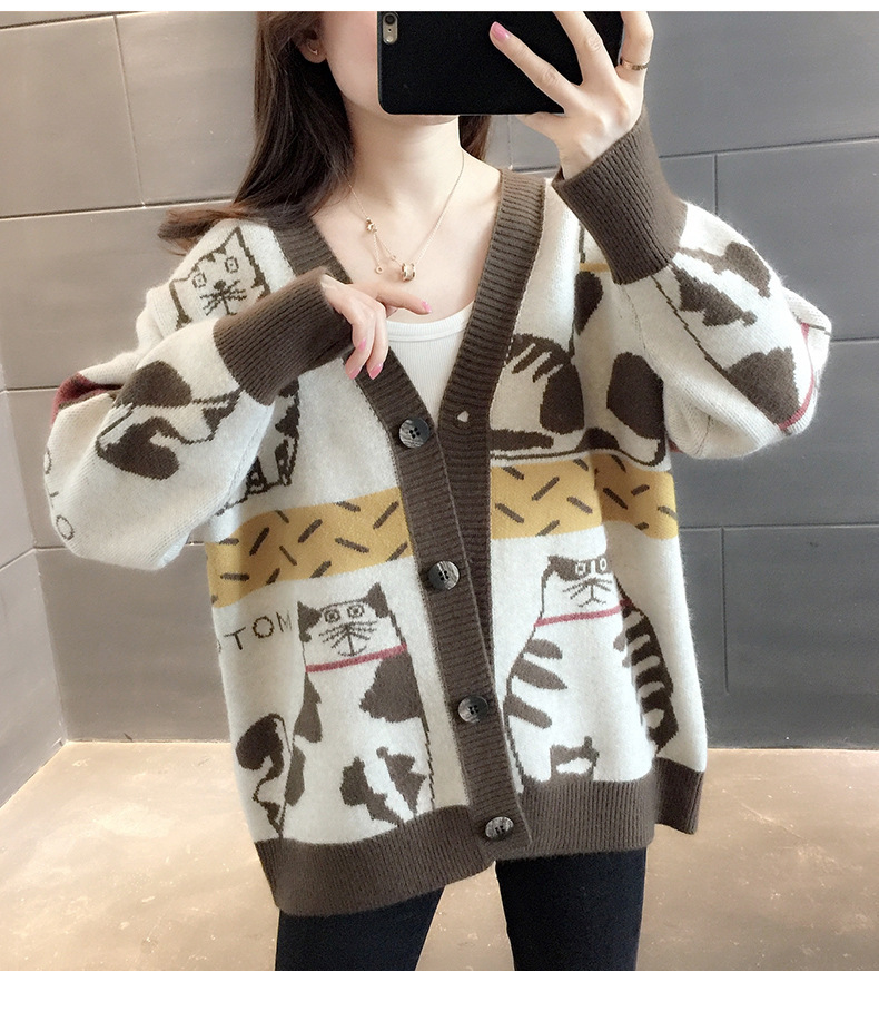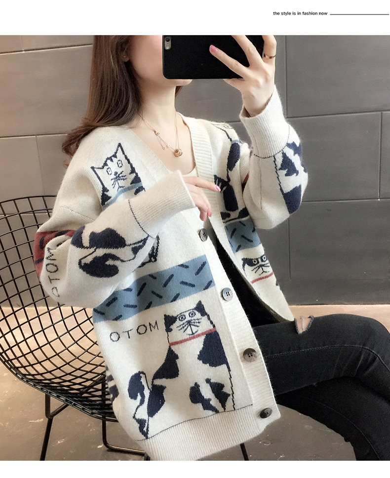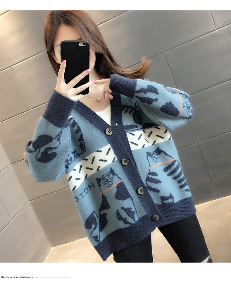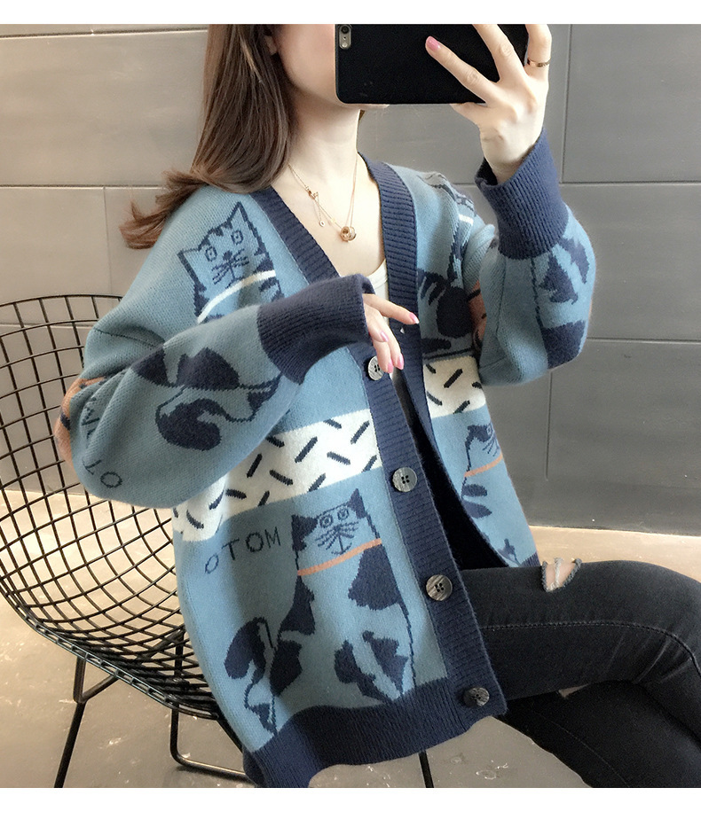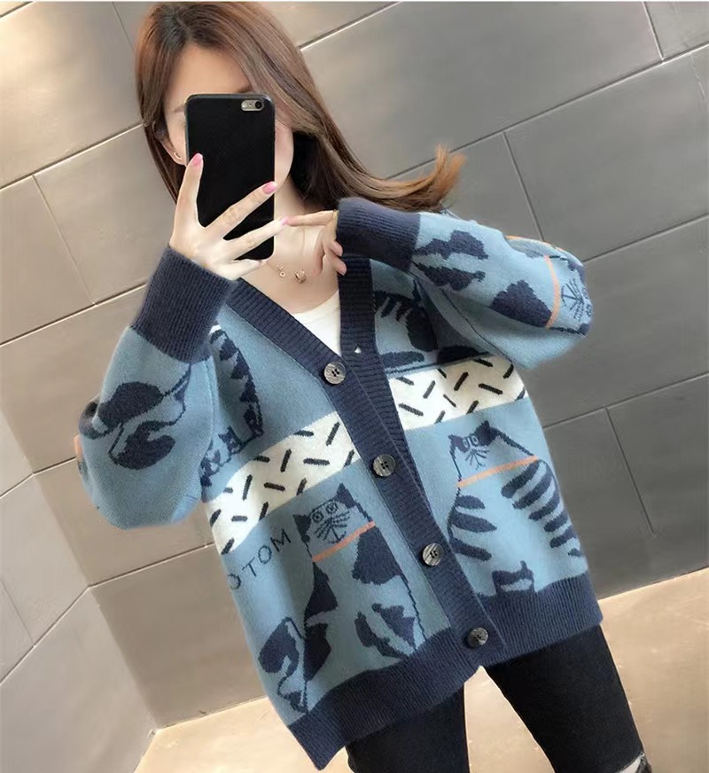 한국 스타일 신선한 여성 스웨터 카디건 가을/겨울 2022 새로운 색상 대비 학술 스타일 느슨한 니트 재킷스토어 가기