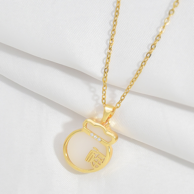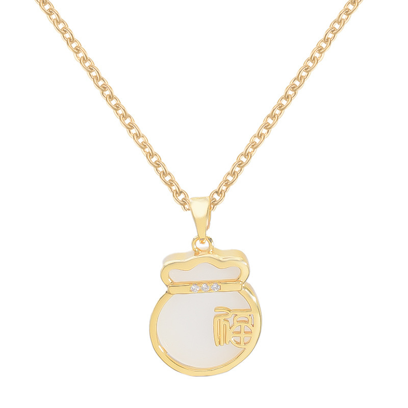 2024 새로운 모조 옥 가방 펜던트 마이크로 상감 민족 스타일 복고풍 맞춤형 올 매치 인터넷 기념 하이 엔드 여성 쇄골 체인