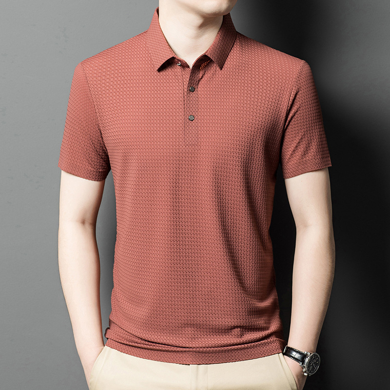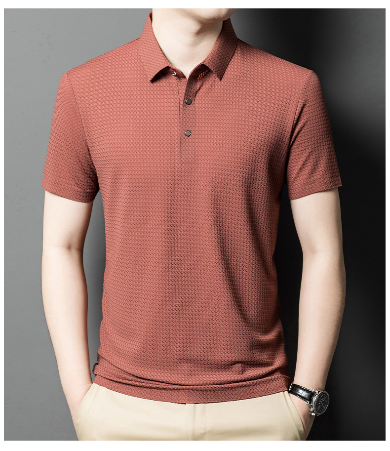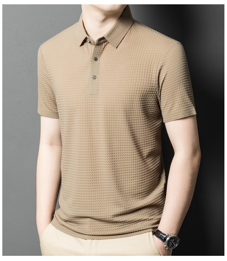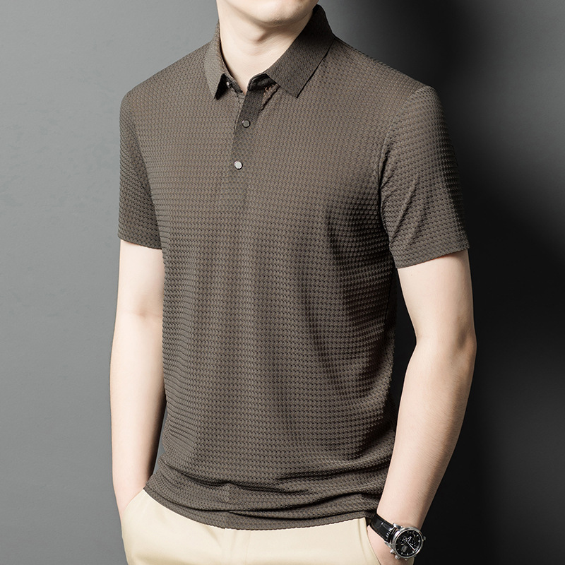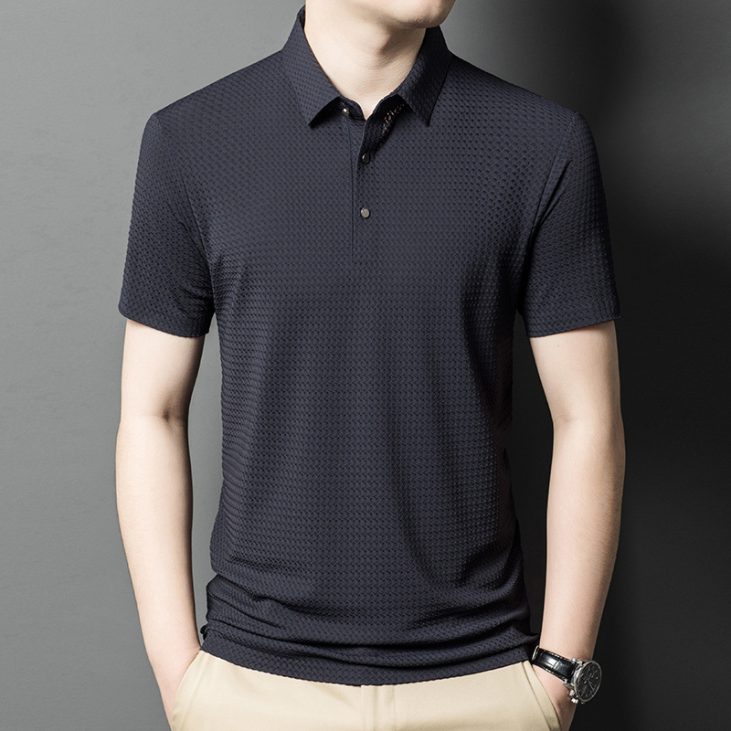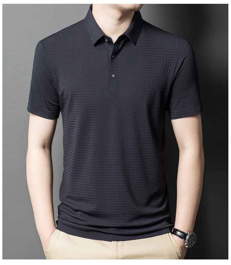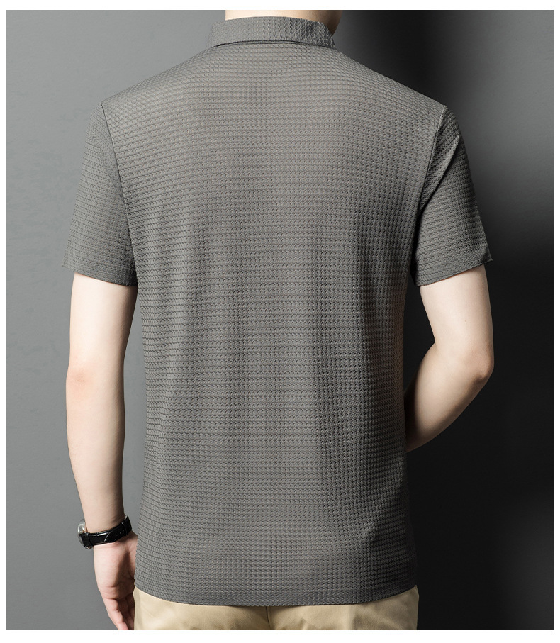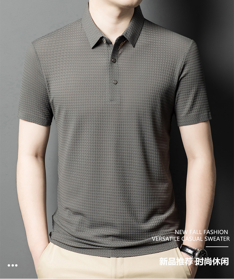 T12 가벼운 성숙한 남성 옷깃 POLO 셔츠 봄과 가을 탑 그레이 짧은 소매 남성 비즈니스 스타일 여름 캐주얼 티셔츠