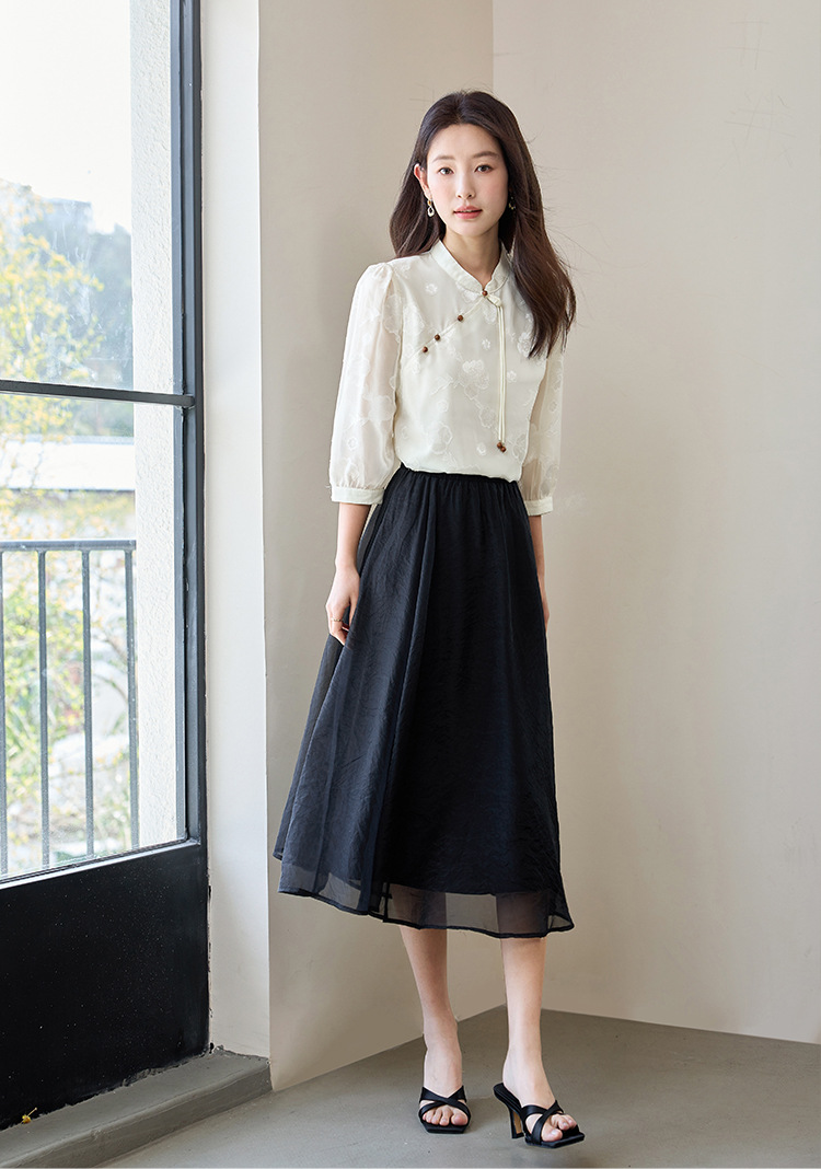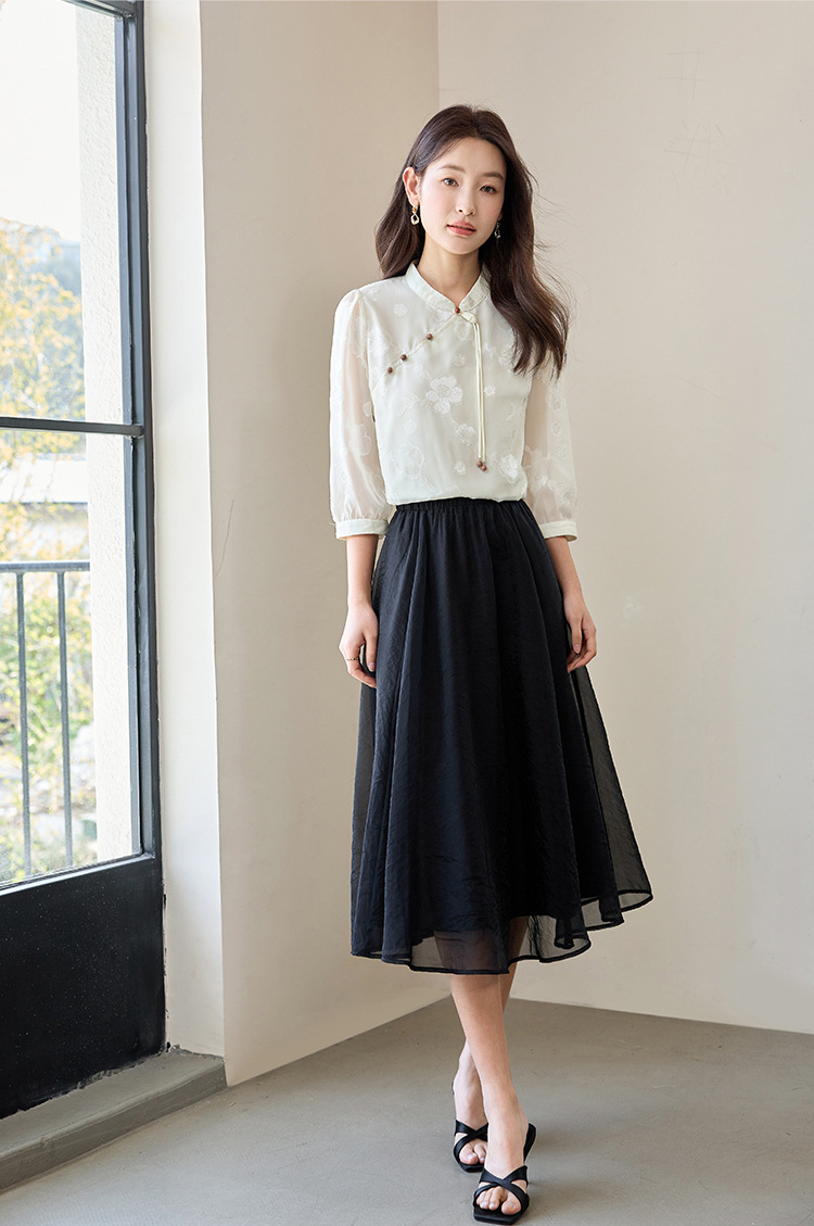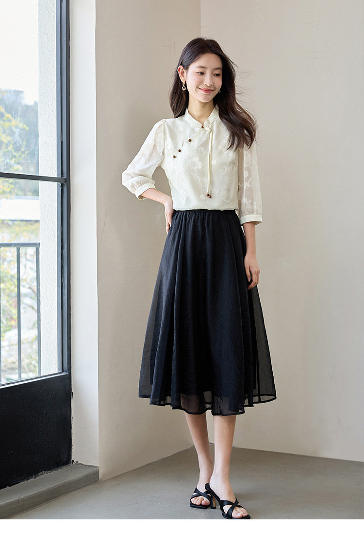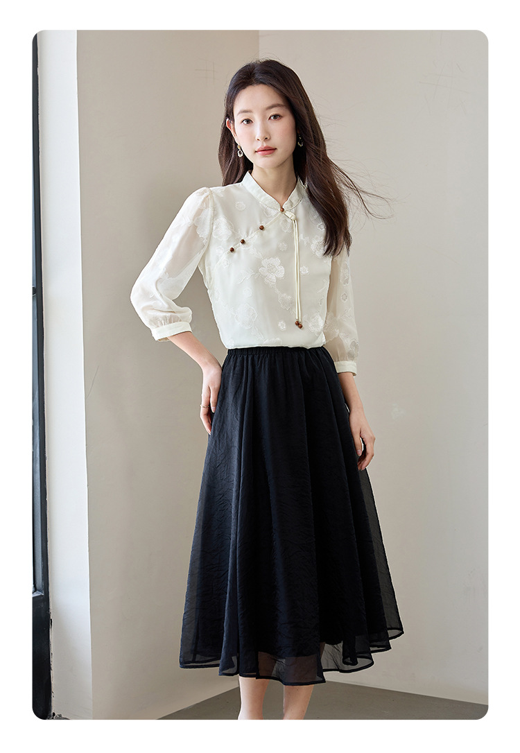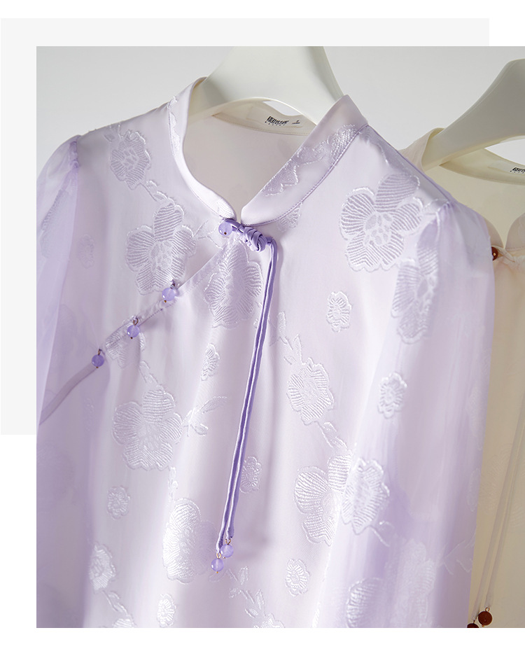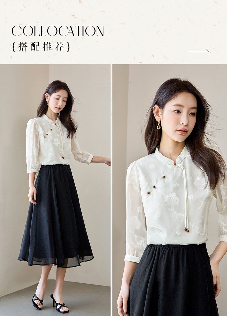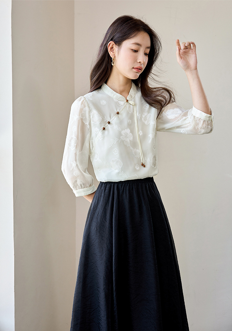 국가 스타일 개선 된 청삼 쉬폰 셔츠 봄과 여름 새로운 중국 스타일 수직 칼라 세븐 포인트 슬리브 셔츠 탑 153LS005