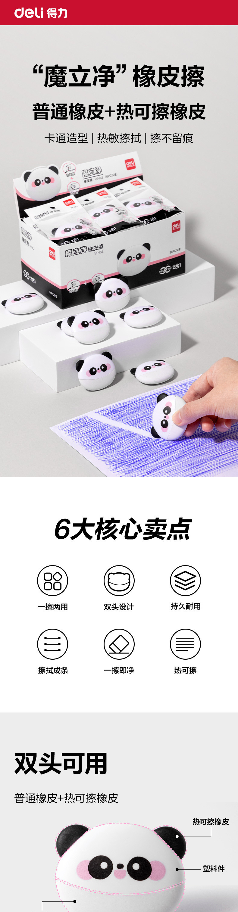델리 VP162 팬더 다기능 지우개 연필 지우개 + 핫 지우개 아트 드로잉 지우개스토어 가기