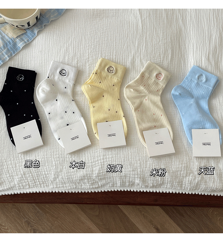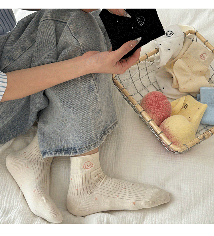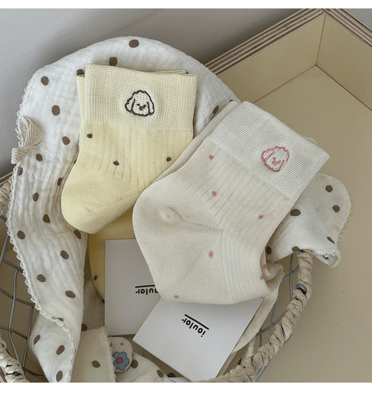강아지 수 놓은 뼈없는 양말 여성용 짧은 양말 여름 얇은 인스 타 그램 스타일 대학 스타일 여성을위한 통기성 편안한 짧은 양말스토어 가기