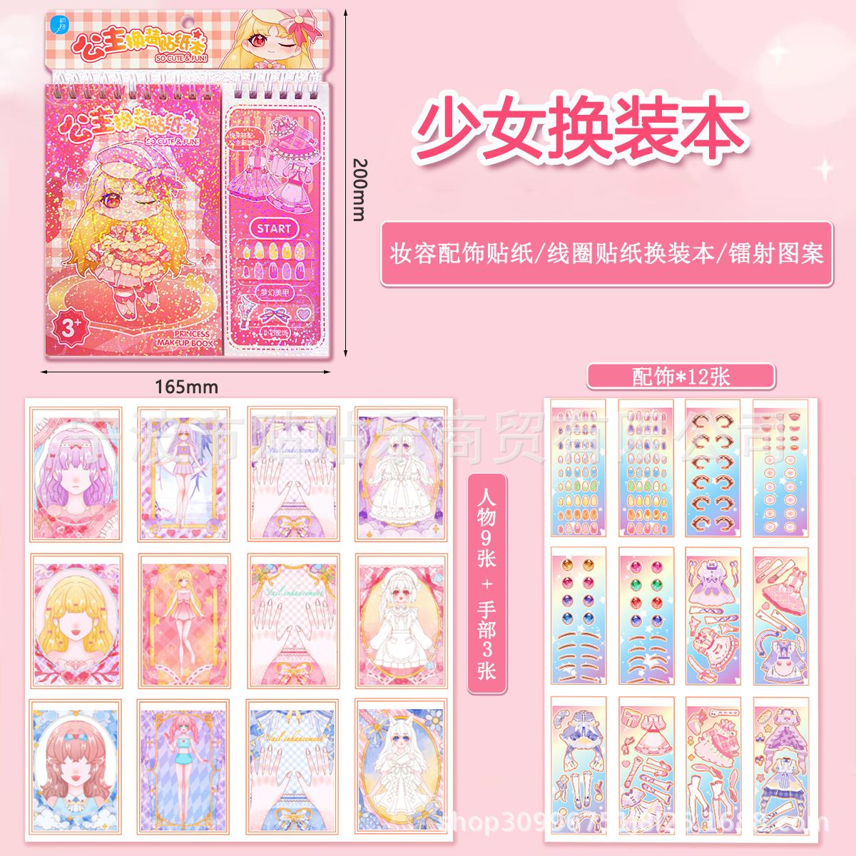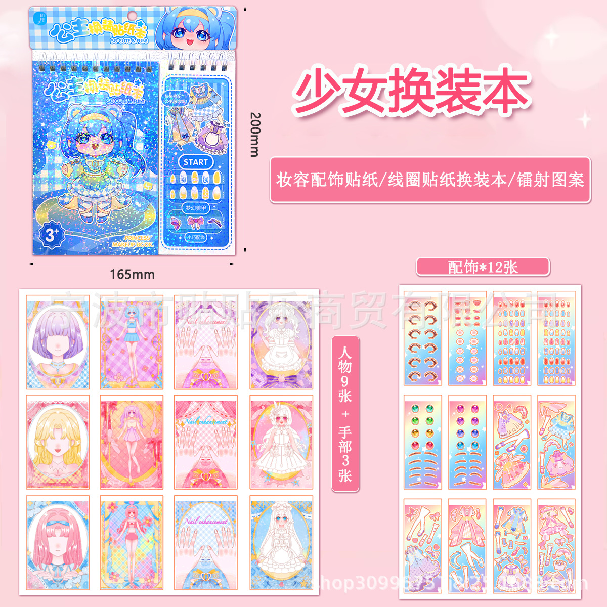 소녀 공주 원피스 최대 스티커 책 어린이 3 ~ 6 세 소녀 뷰티 메이크업 교육 장난감 레이저 매니큐어 스티커 스티커스토어 가기