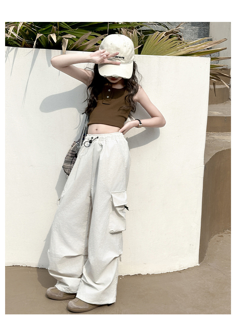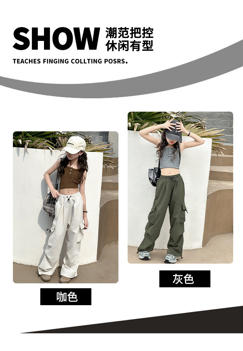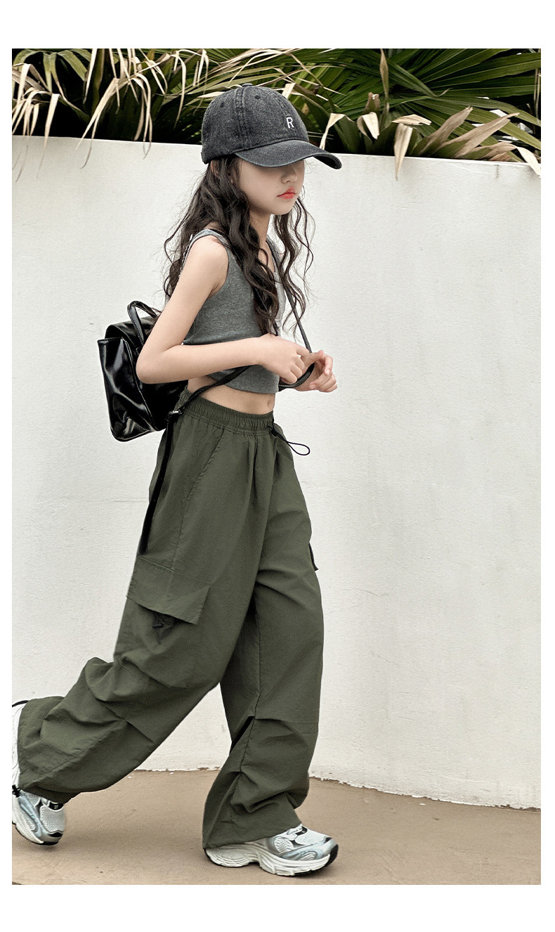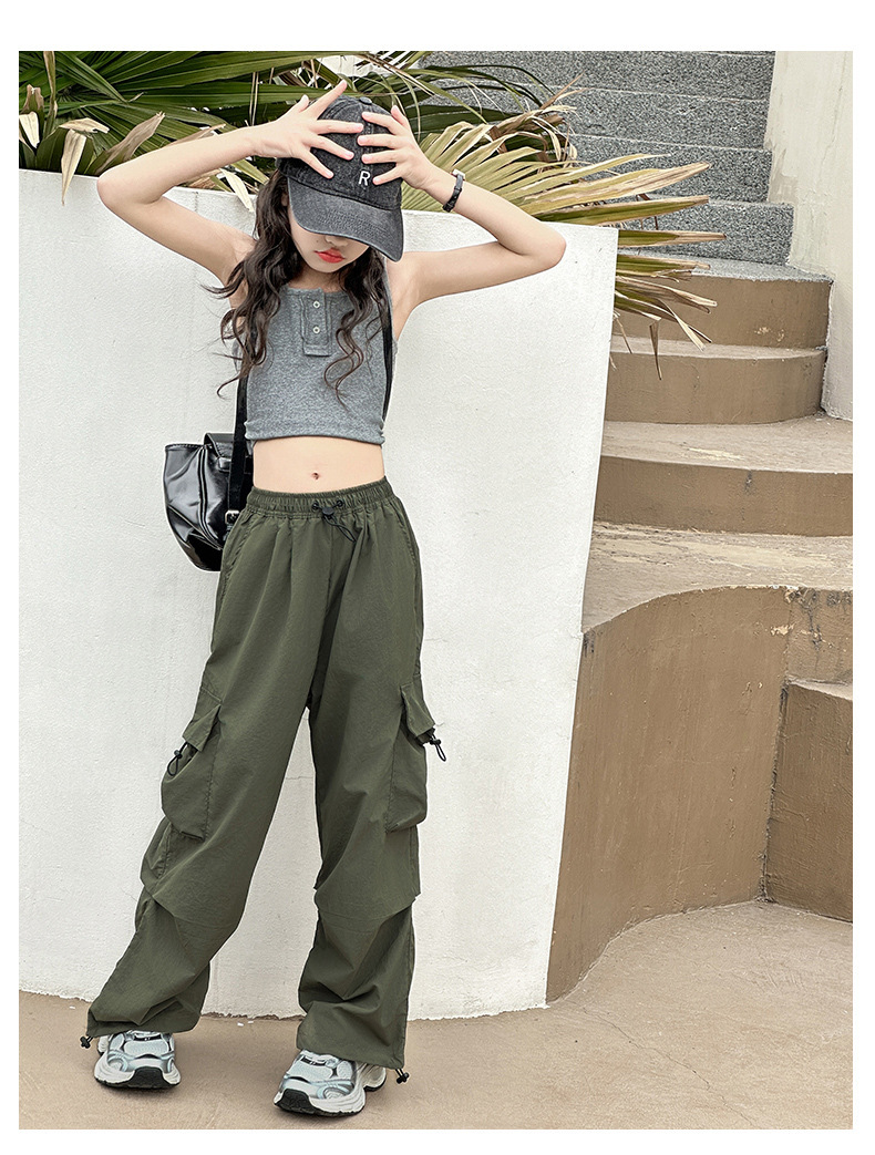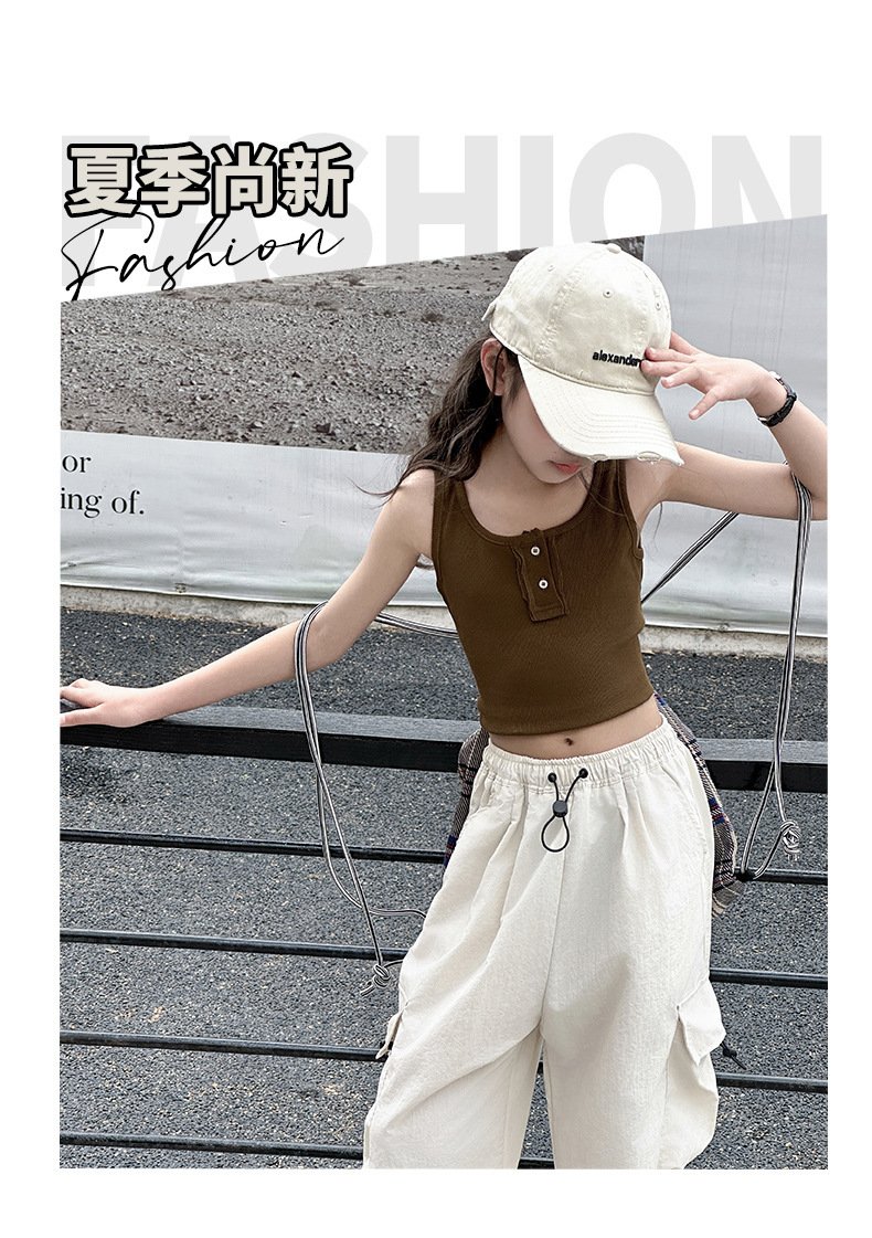 여자 크레인 바지 세트 새로운 2024 여름 어린이 캐주얼 조끼 티셔츠 안티 모기 와이드 레그 바지 투피스 세트 T스토어 가기