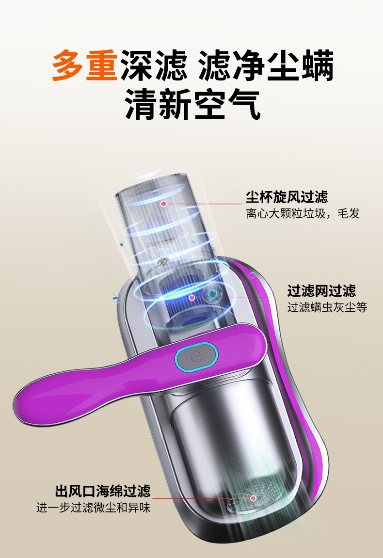 가정용 무선 충전 침대 살균제 UV 살균제 먼지 상자 휴대용 진공 청소기 살비제