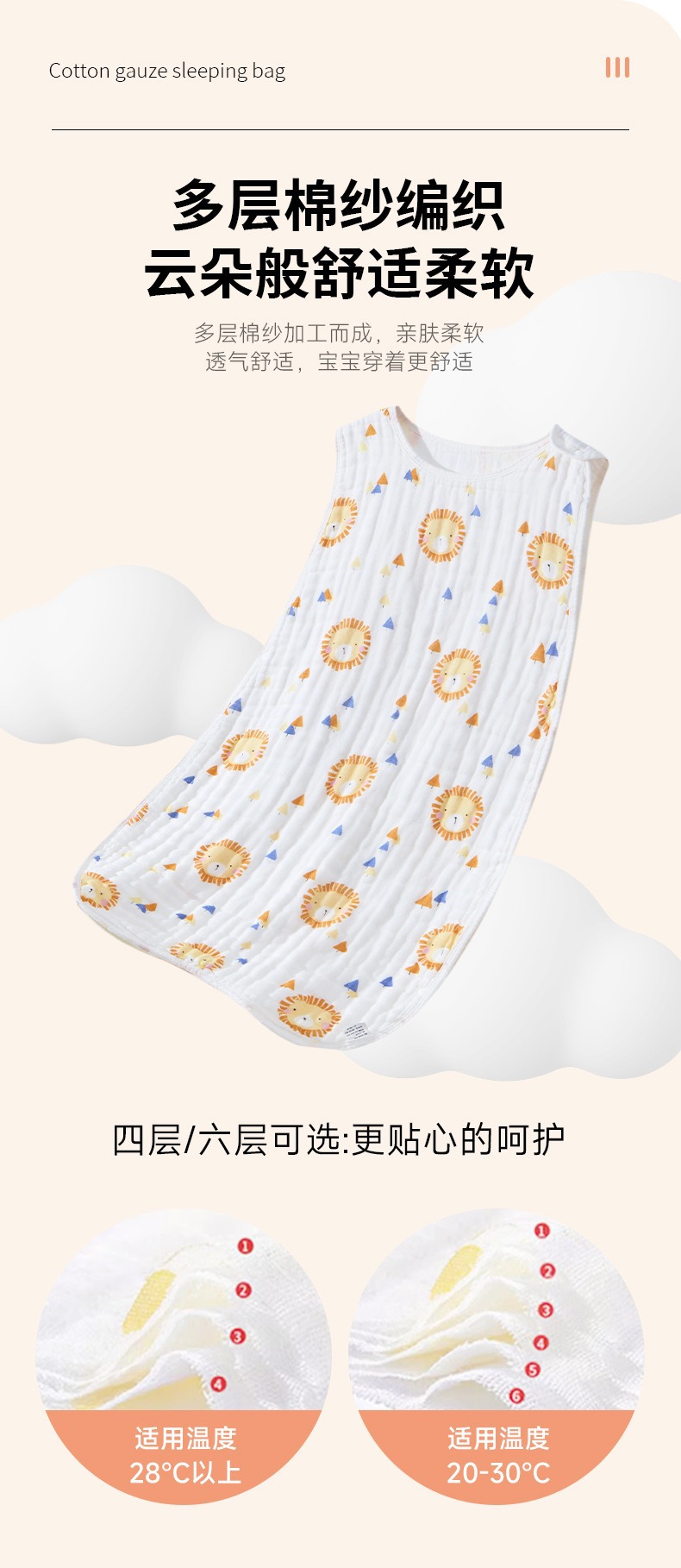 봄과 가을 봄과 여름 아기 잠자는 가방 아기 클래스 순수한 면 거즈 신생아 슬리핑 백 분할 봄 큰 얇은스토어 가기