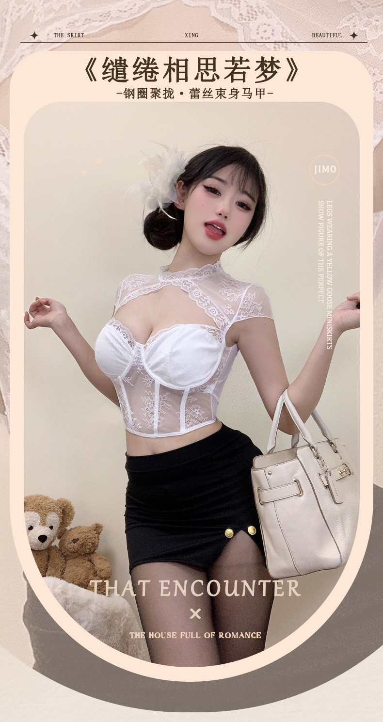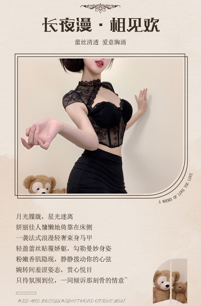 타오 타오 나이 새로운 섹시한 속옷 섹시한 내부 낮은 목 스파이스 소녀 교수형 목 레이스 순수한 욕망 빈 탑 세트스토어 가기