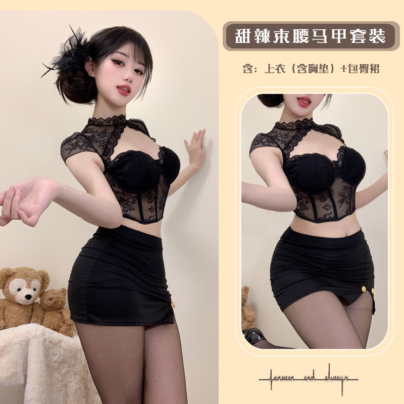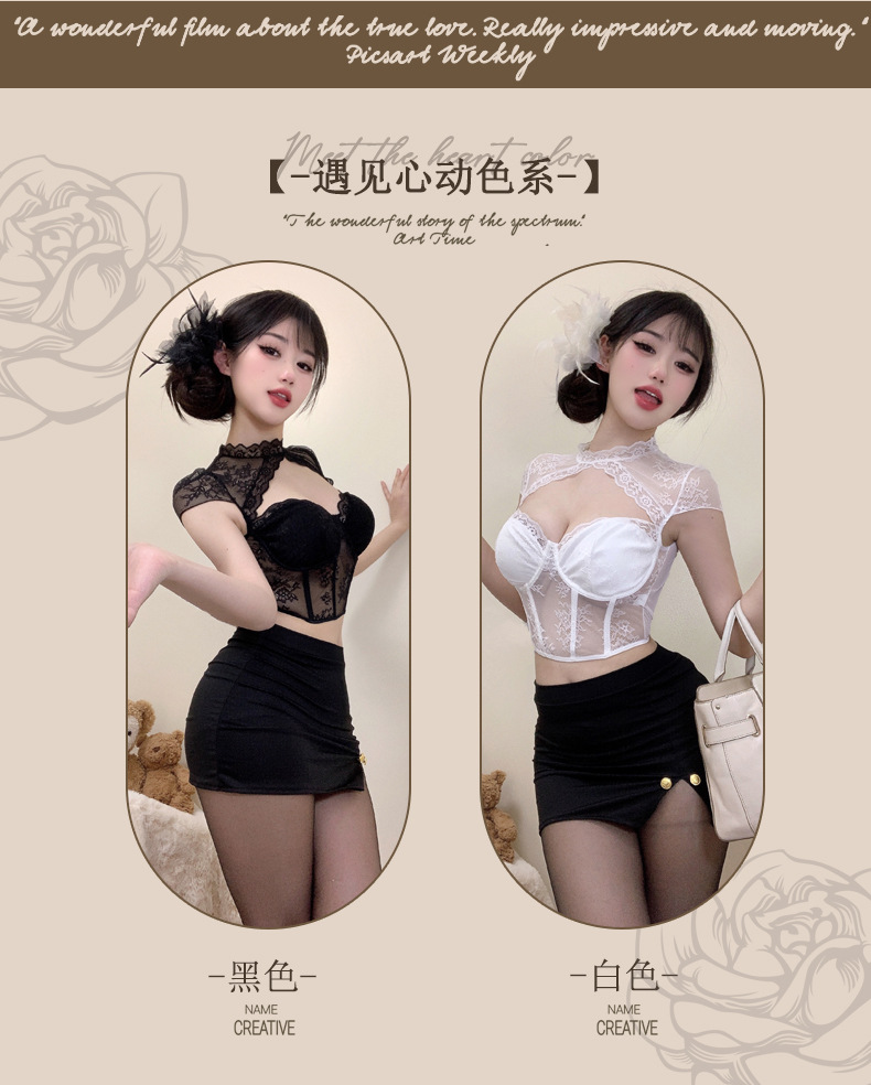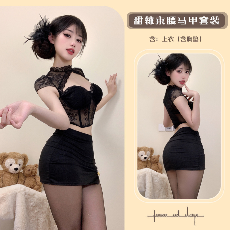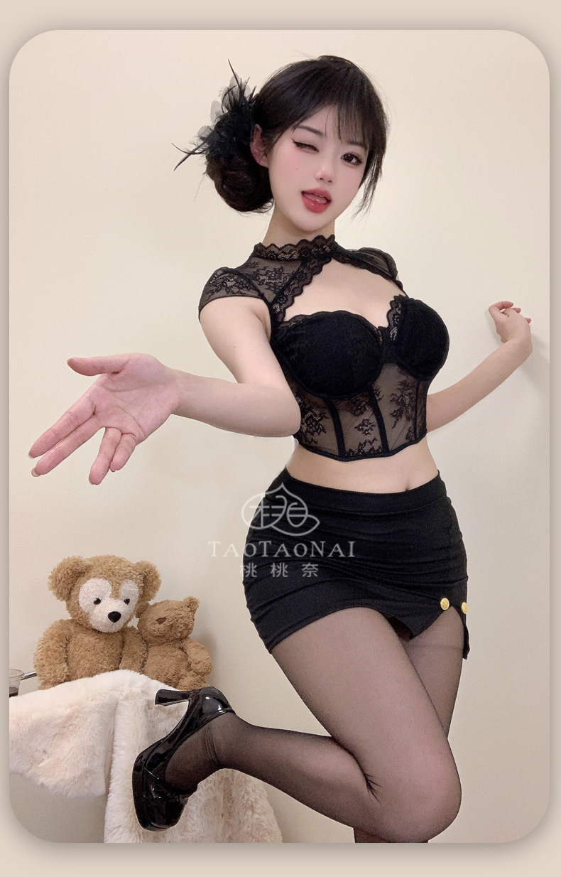 타오 타오 나이 새로운 섹시한 속옷 섹시한 내부 낮은 목 스파이스 소녀 교수형 목 레이스 순수한 욕망 빈 탑 세트
