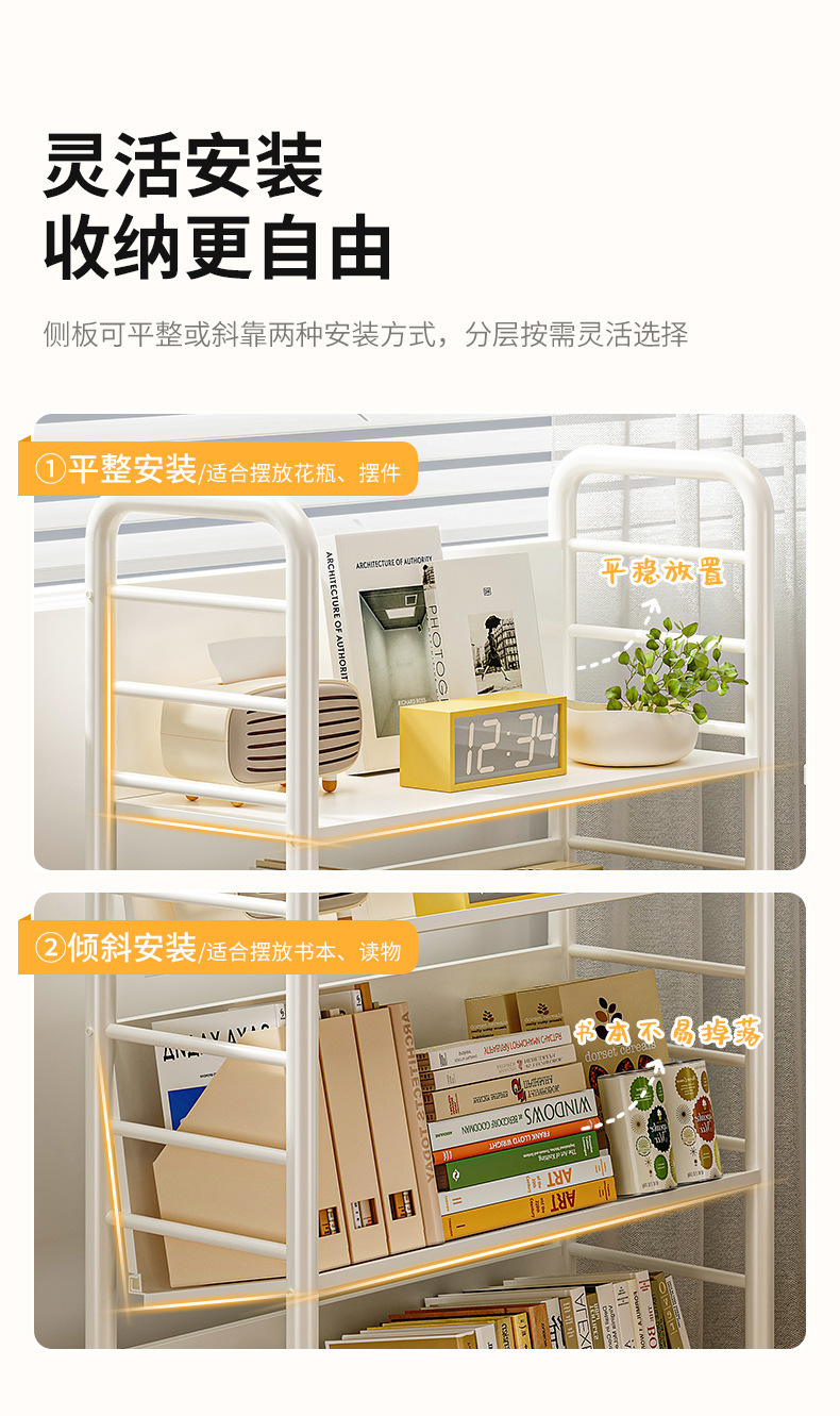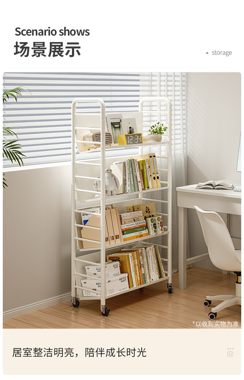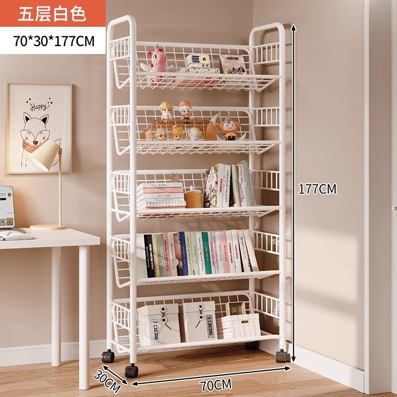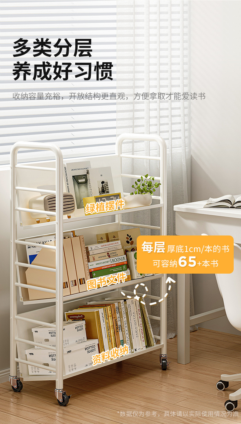 모바일 카트 저장 선반 책꽂이 바퀴 달린 철 선반 보관 책상 바닥 책 잡지 선반