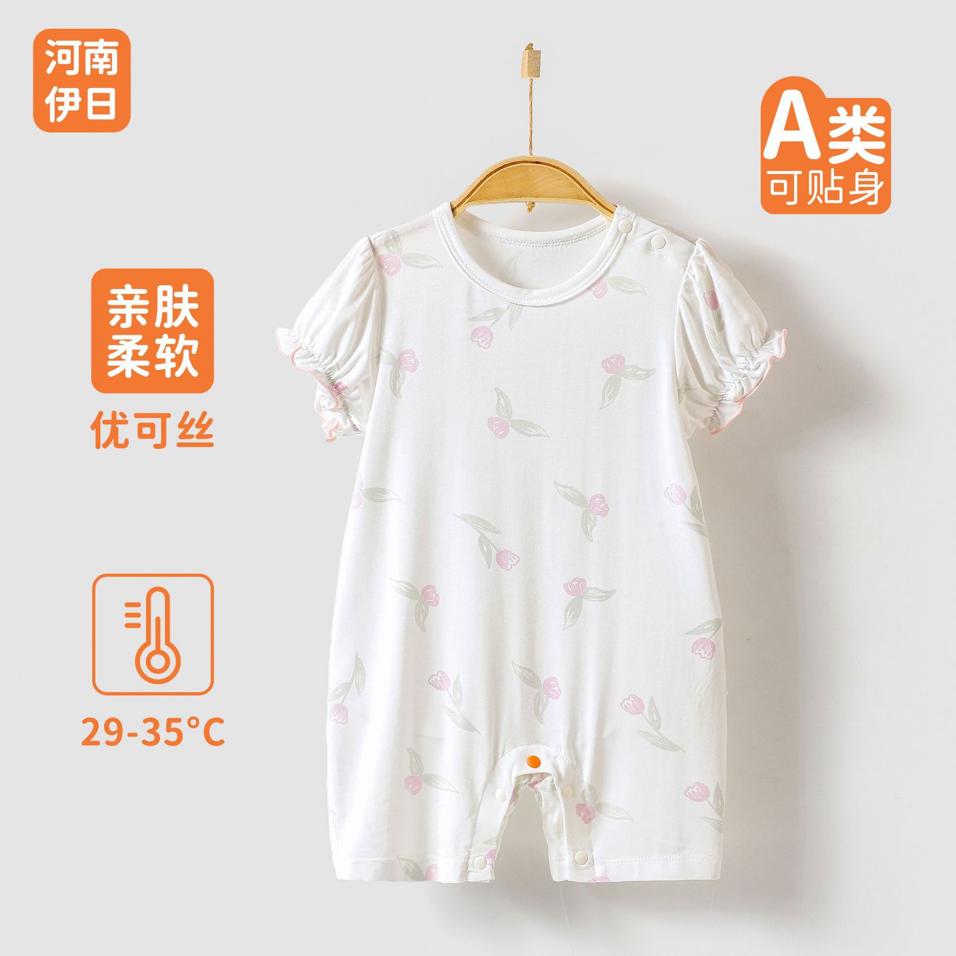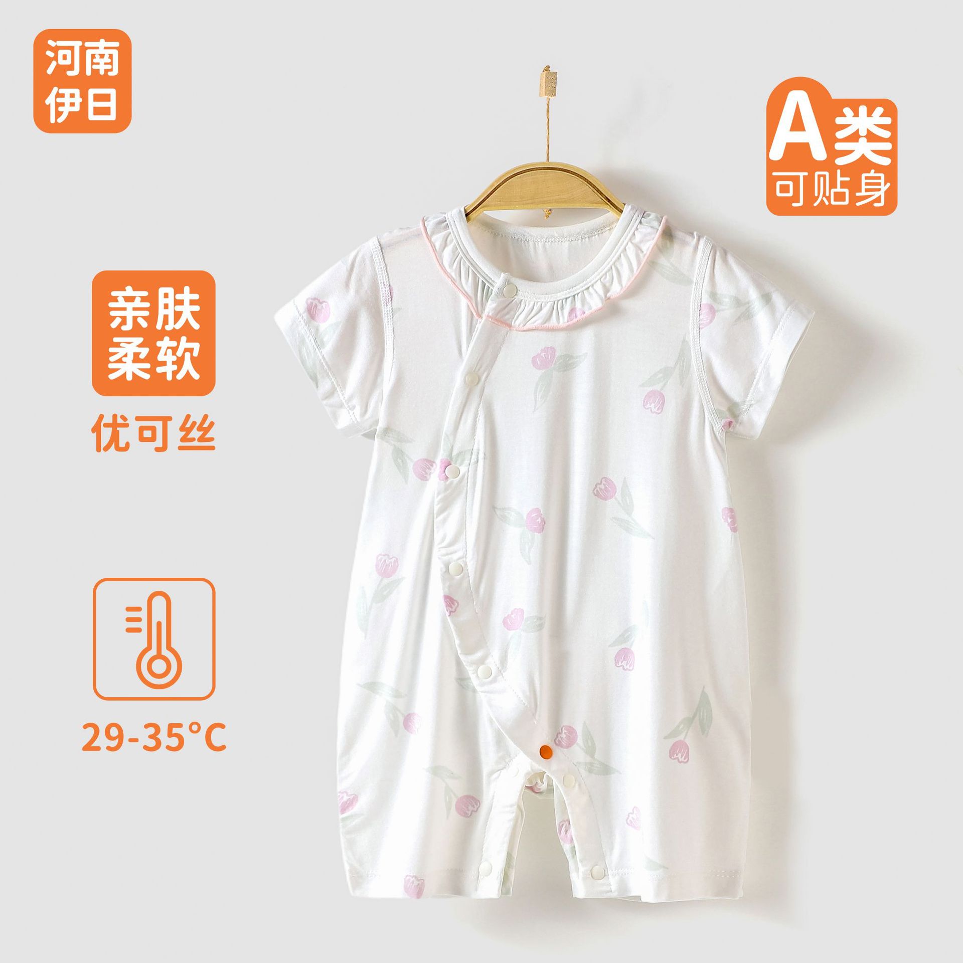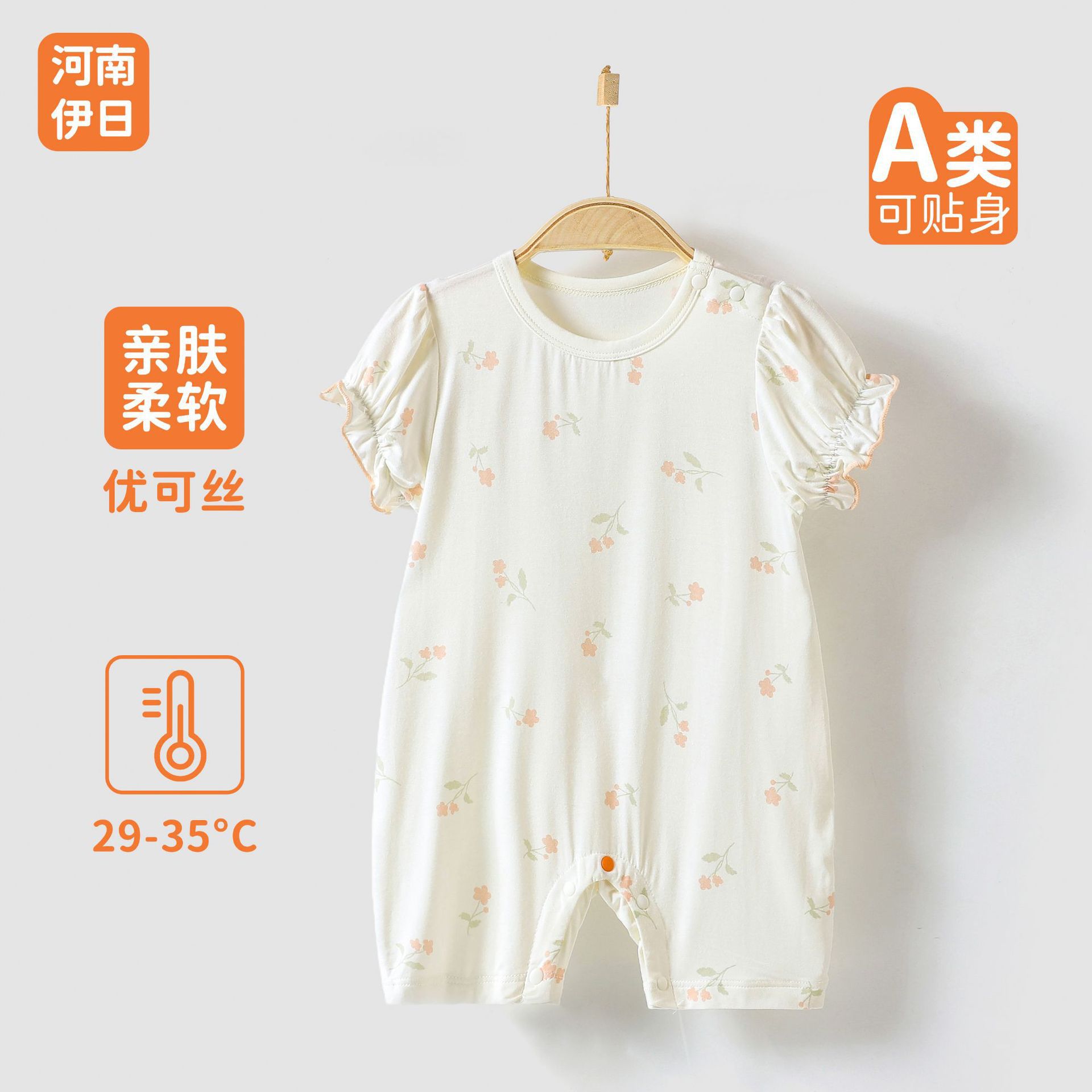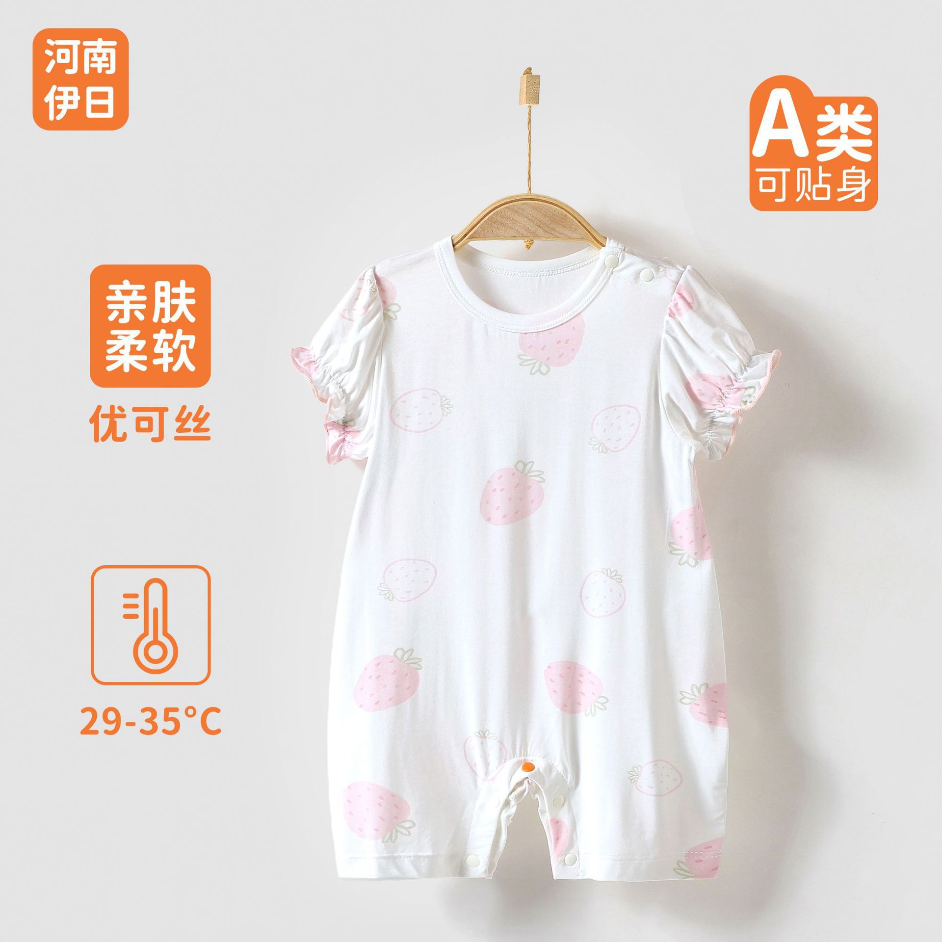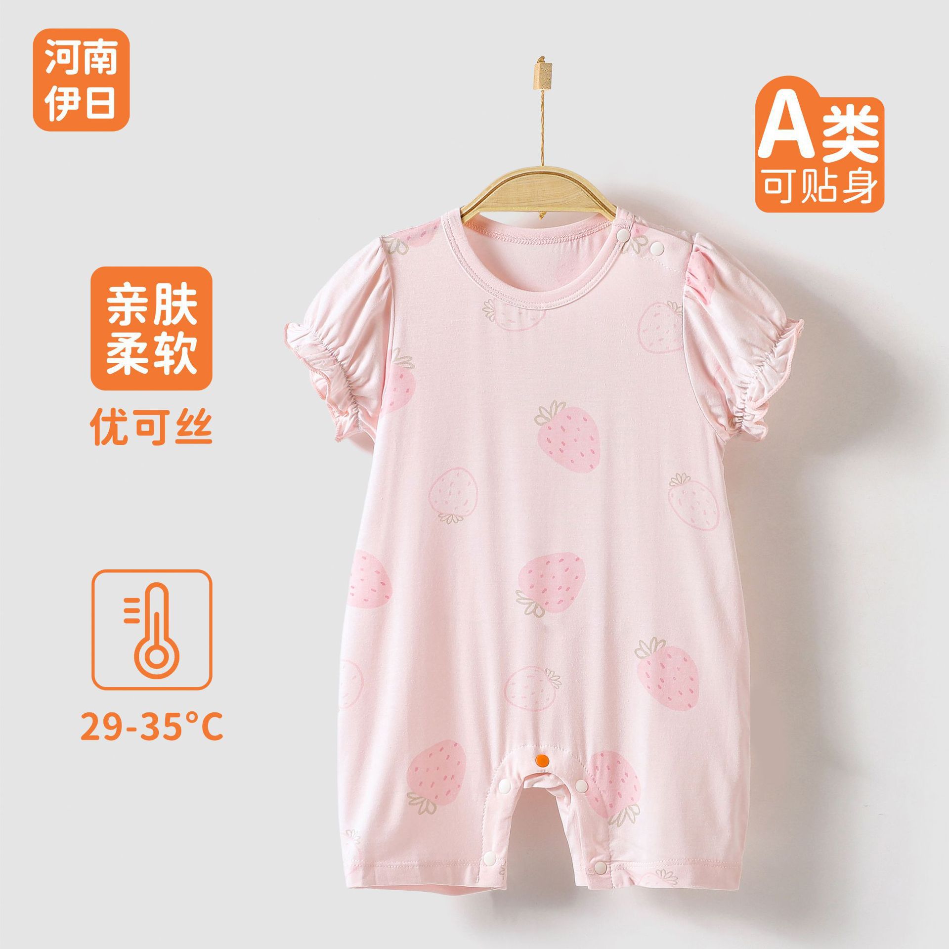 허난 Yiri 아기 여름 얇은 옷 아기 여름 점프 슈트 잠옷 소녀 반팔 장난 꾸러기 여름 옷