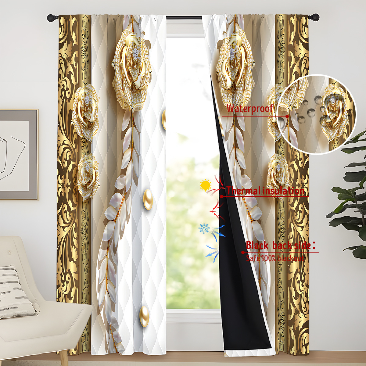 2024년 신제품 완전 암막 코팅 3D 디지털 프린팅 맞춤형 커튼 해외 창고에서 직배송되는 크로스보더 커튼