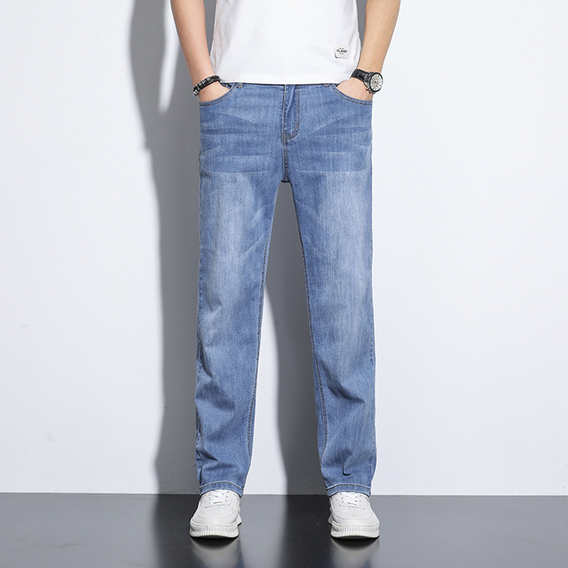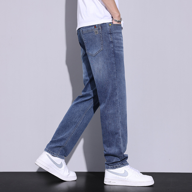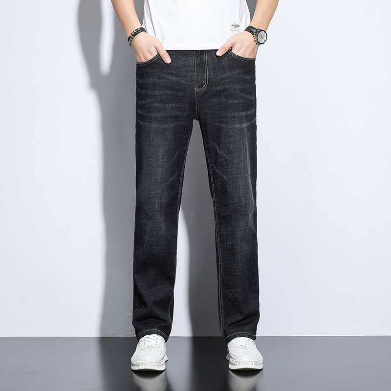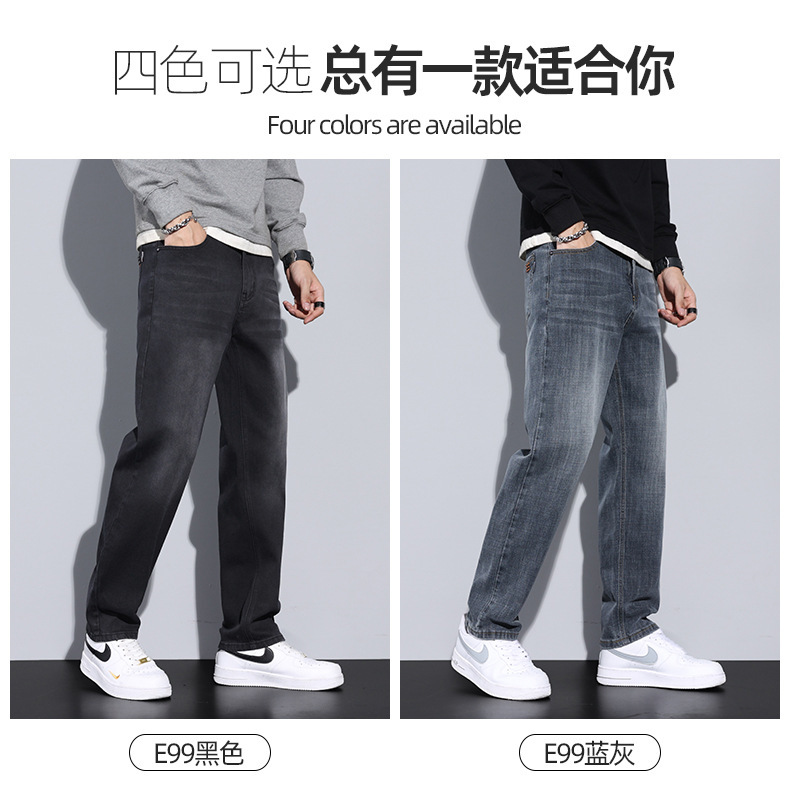 2024 가을 겨울 신상 남성 루즈핏 스트레이트 데님 팬츠, 트렌디하고 캐주얼하며 활용도 높은 두꺼운 롱 팬츠