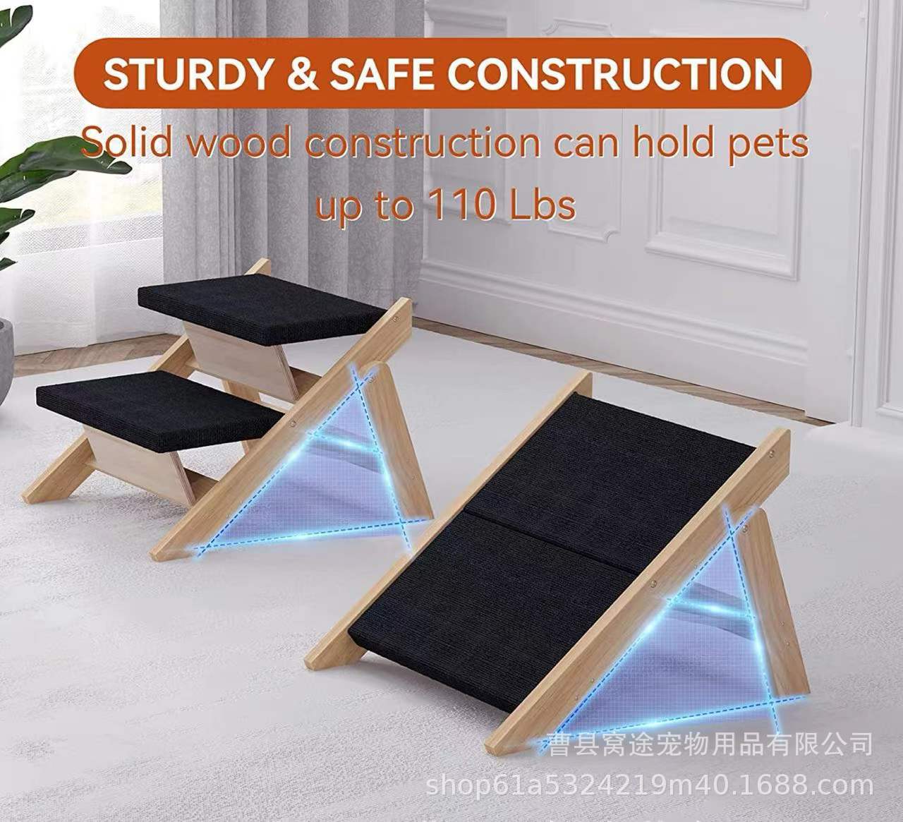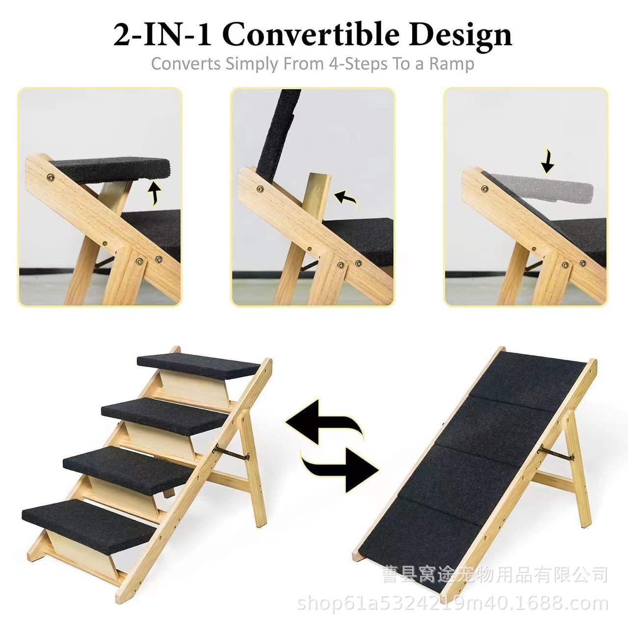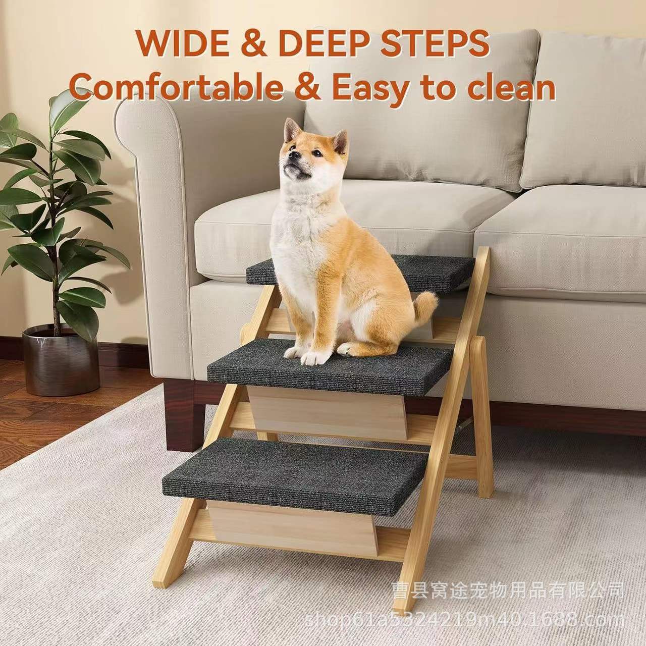새로운 접이식 나무 개 사다리 실내 다층 단단한 나무 개 사다리 애완 동물 상부 소파 나무 사다리