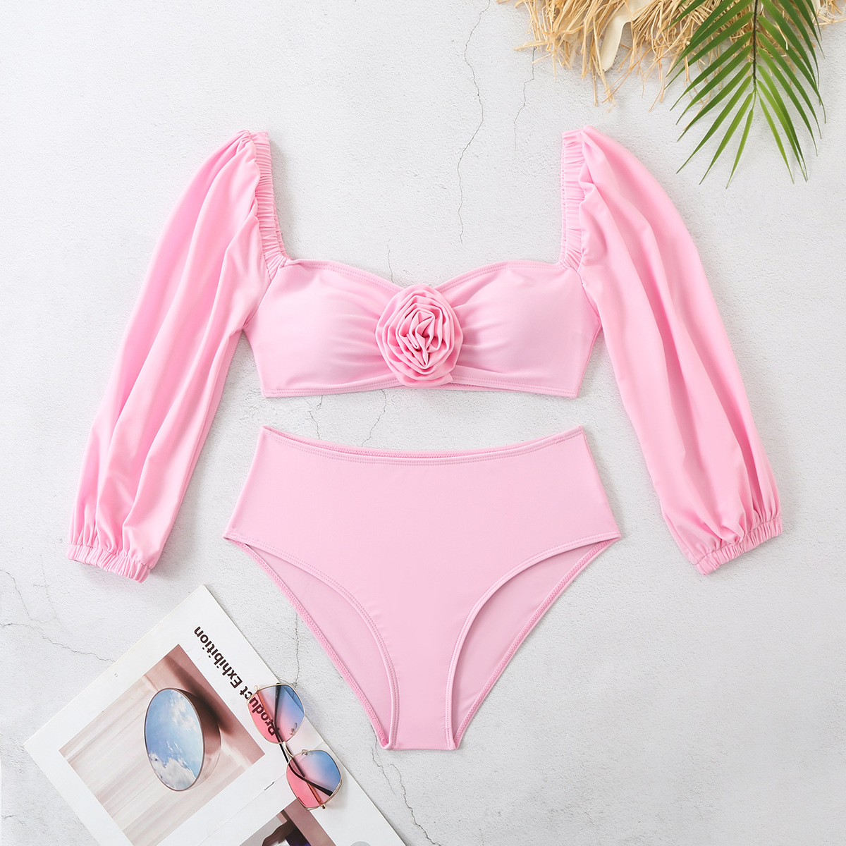 3D 입체 꽃 튜브 상단 긴 소매 분할 수영복 여성의 2024 새로운 국경 대외 무역 유럽과 미국 비키니 높은 허리 수출