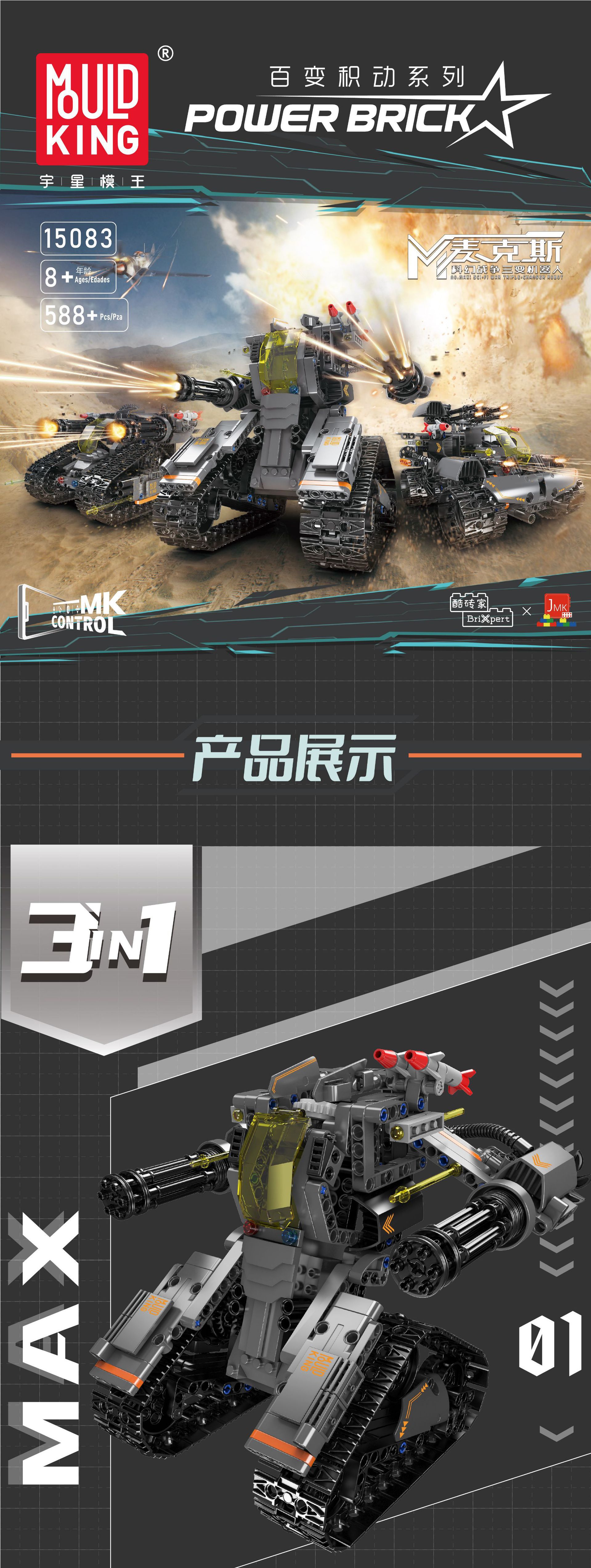Yuxing 15083 최대 공상 과학 전쟁 3 변화 로봇 퍼즐 조립 건물 블록 소년 장난감 원격 제어