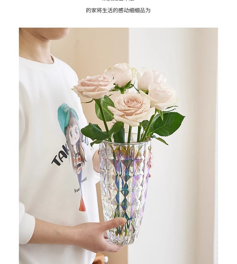 무거운 유리 꽃병 투명 고급 수경 꽃꽂이 백합 장미 꽃 스타일 높은 색상 가치 장식품