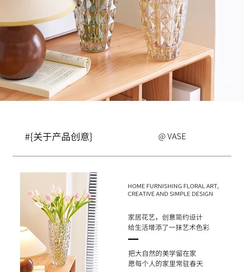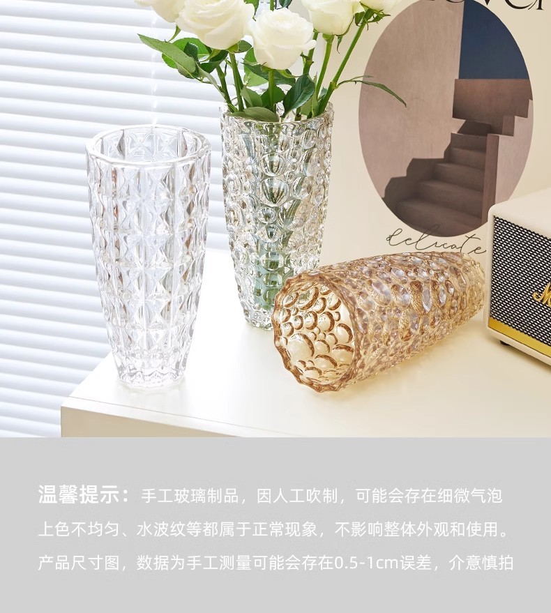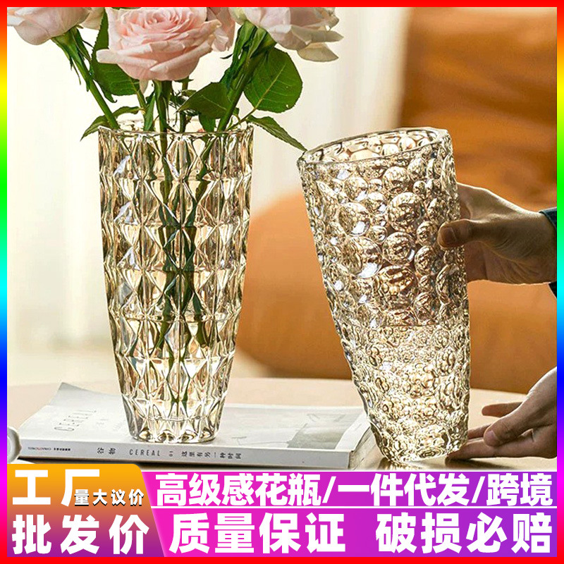 무거운 유리 꽃병 투명 고급 수경 꽃꽂이 백합 장미 꽃 스타일 높은 색상 가치 장식품스토어 가기