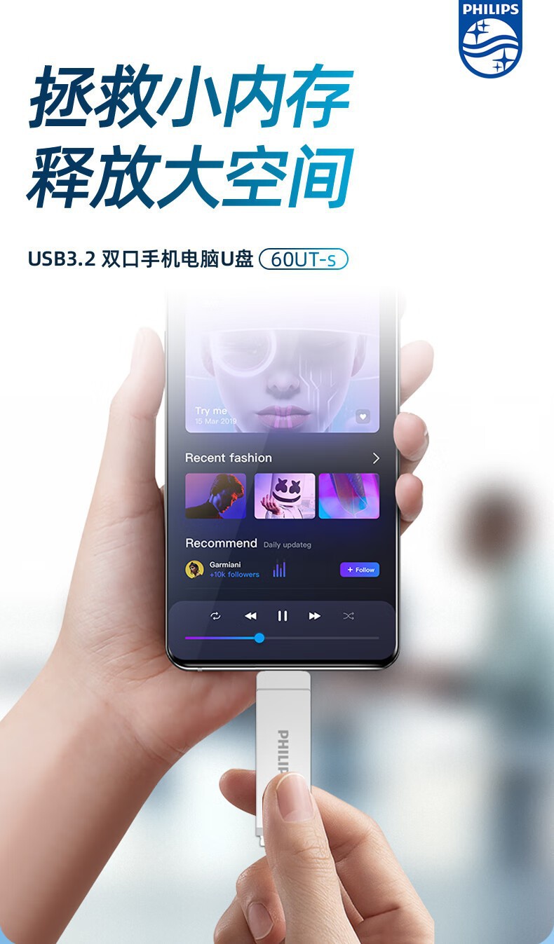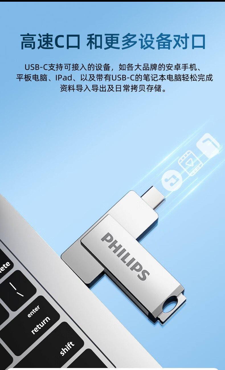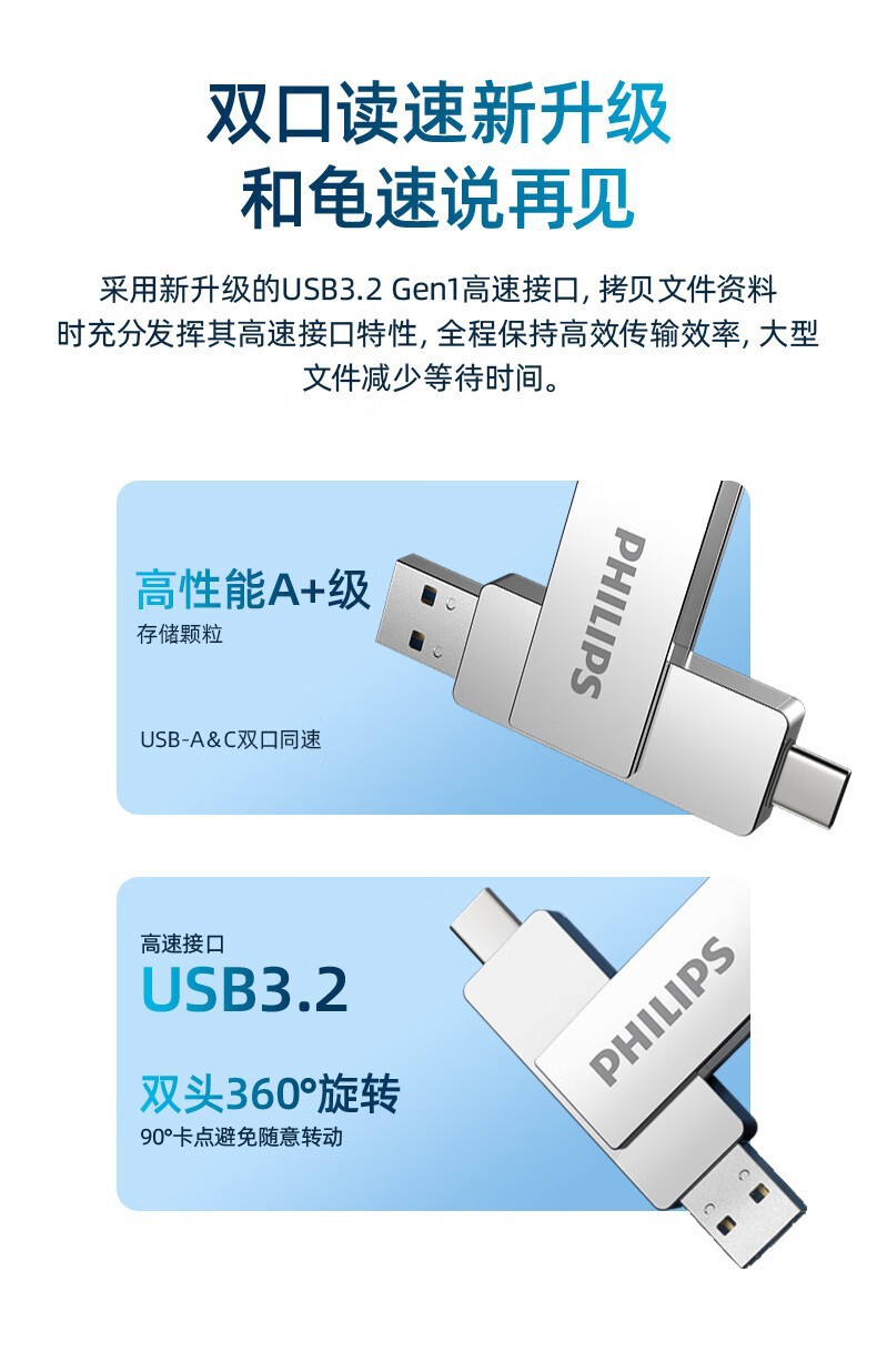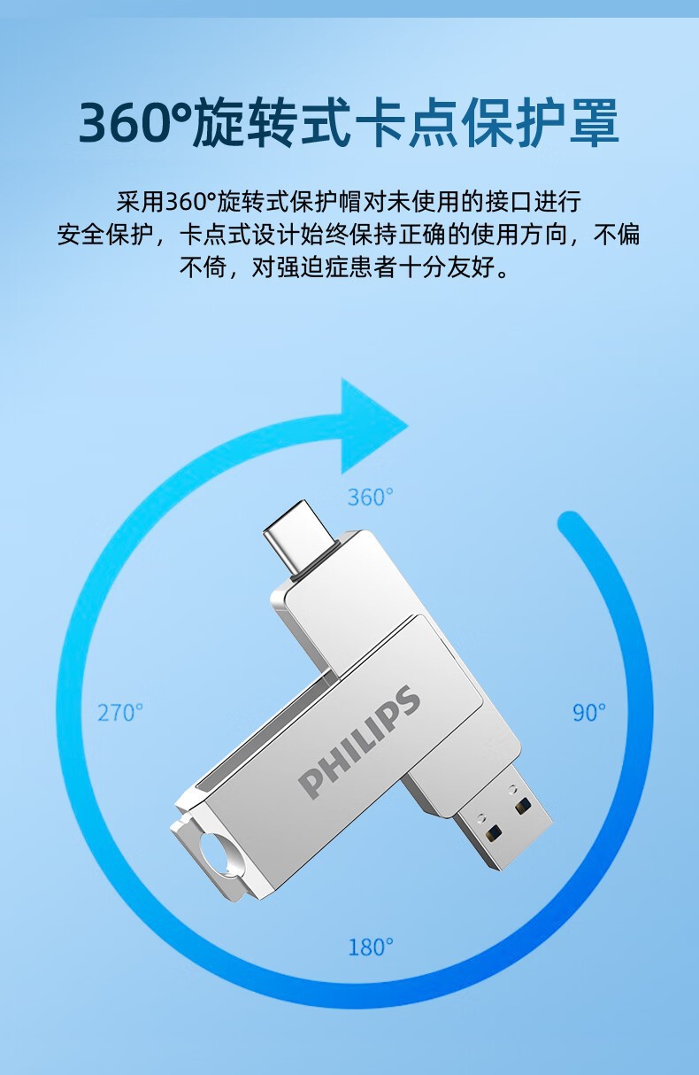 필립스 휴대 전화 u 디스크 60ut-s 컴퓨터 휴대 전화 유형-c 듀얼 인터페이스 금속 소재 사무실 고속 USB 디스크스토어 가기