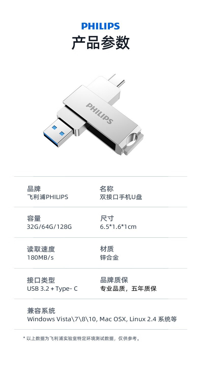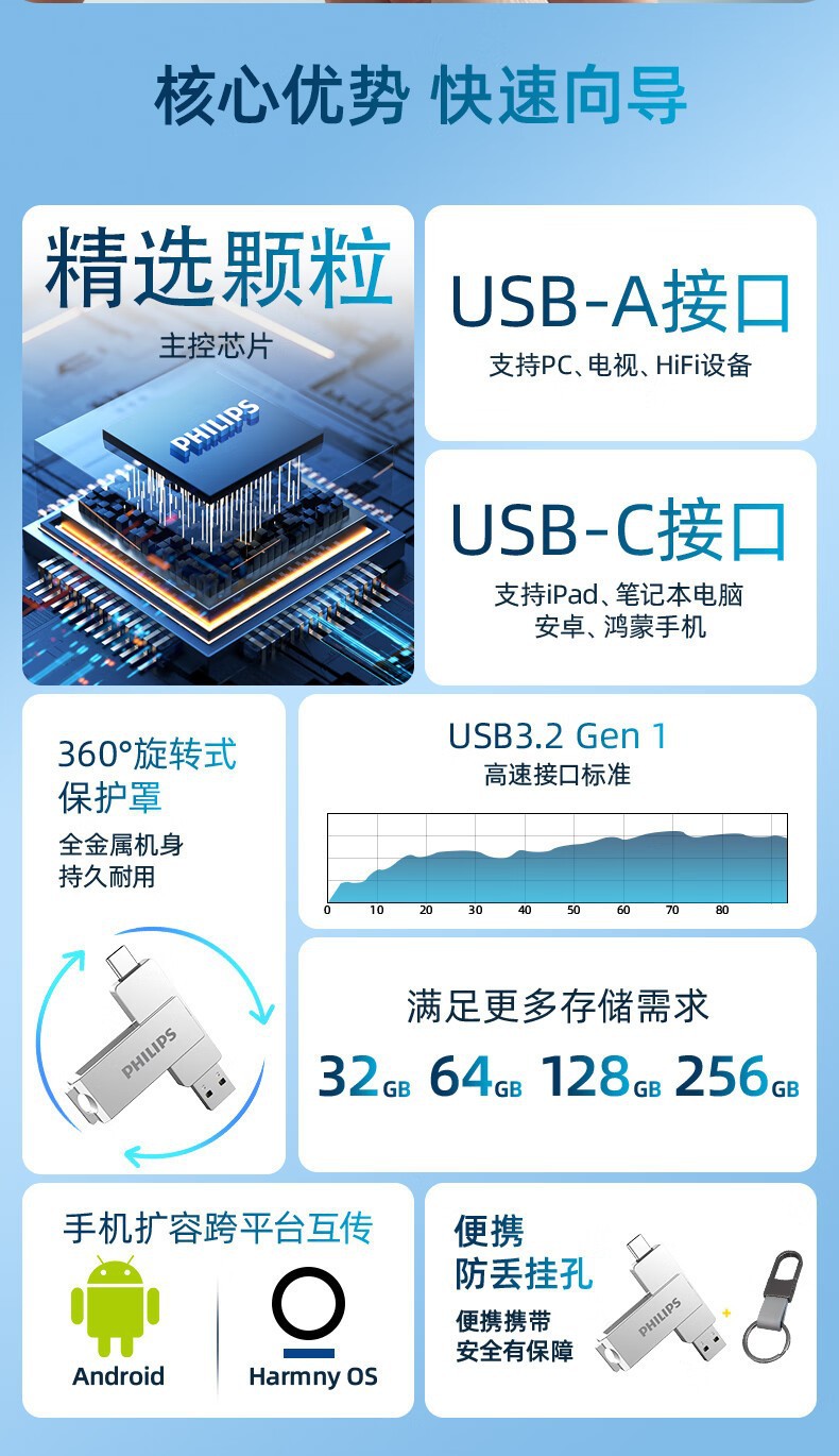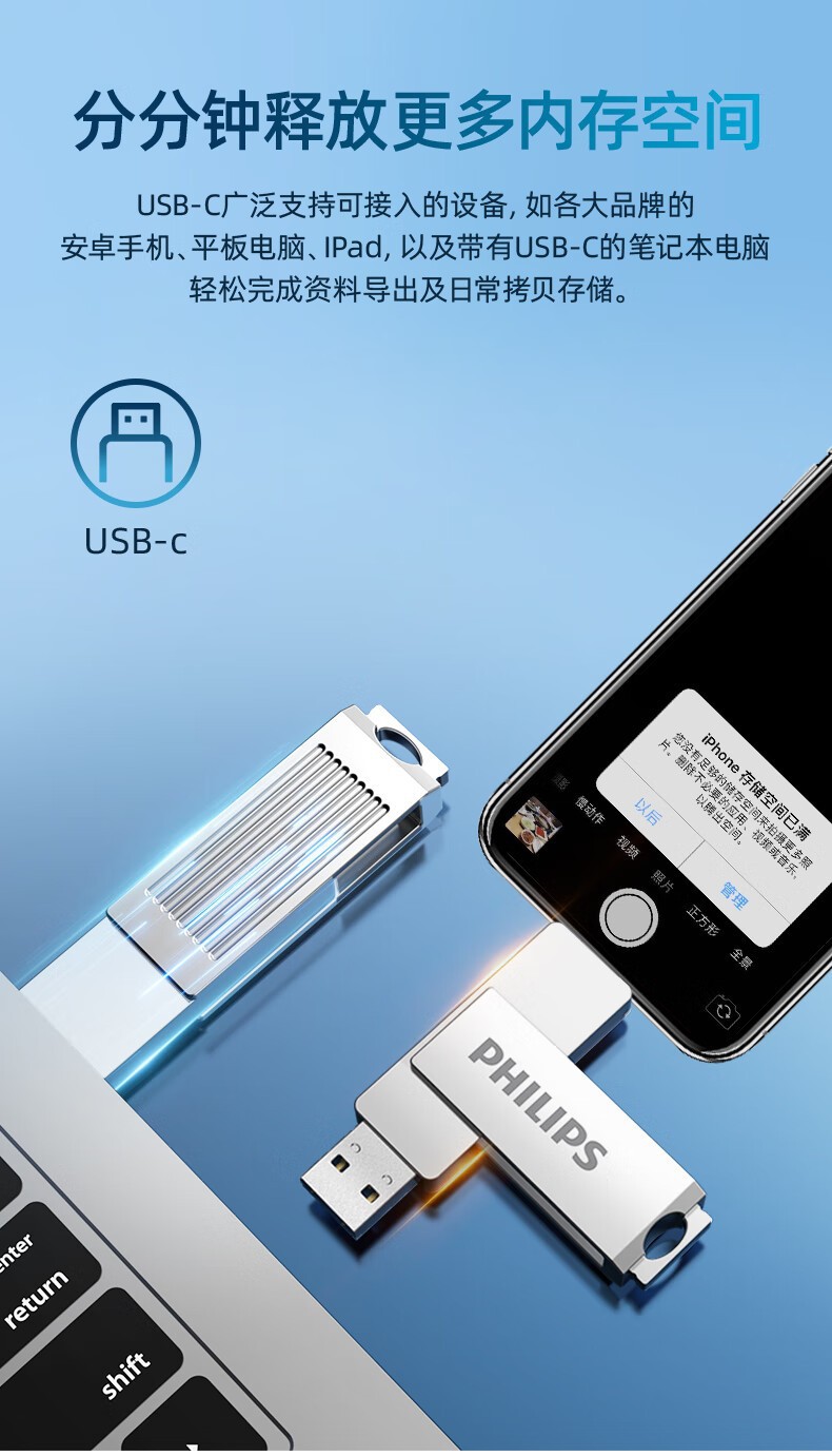 필립스 휴대 전화 u 디스크 60ut-s 컴퓨터 휴대 전화 유형-c 듀얼 인터페이스 금속 소재 사무실 고속 USB 디스크스토어 가기