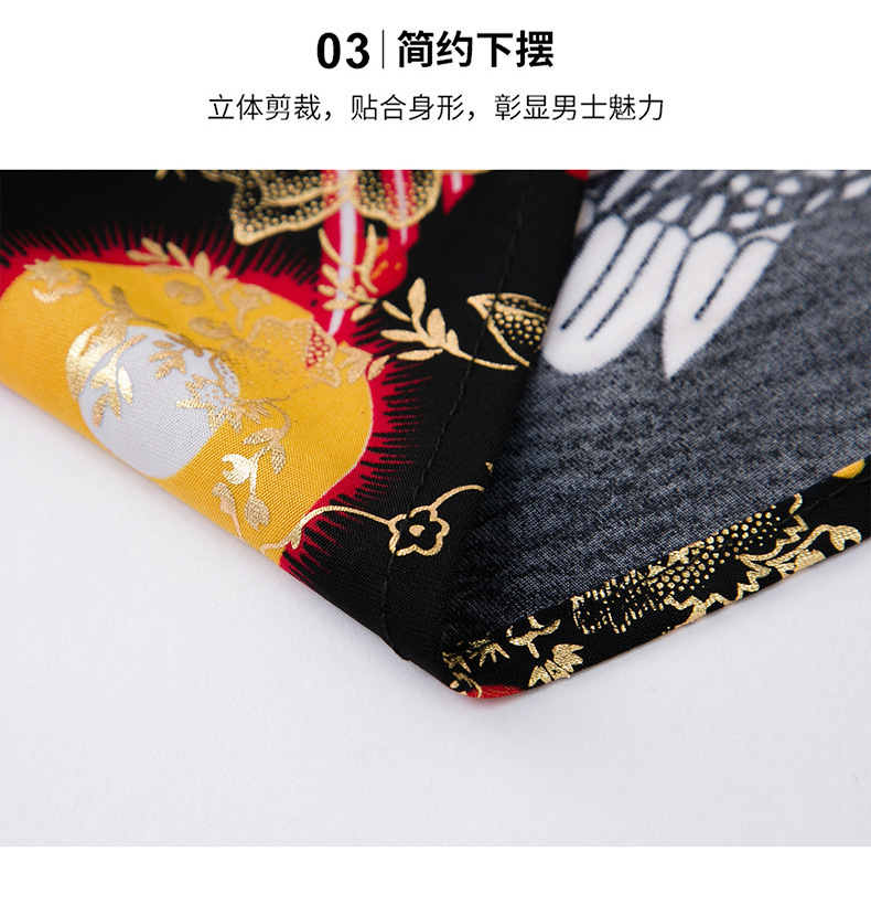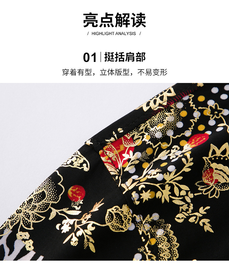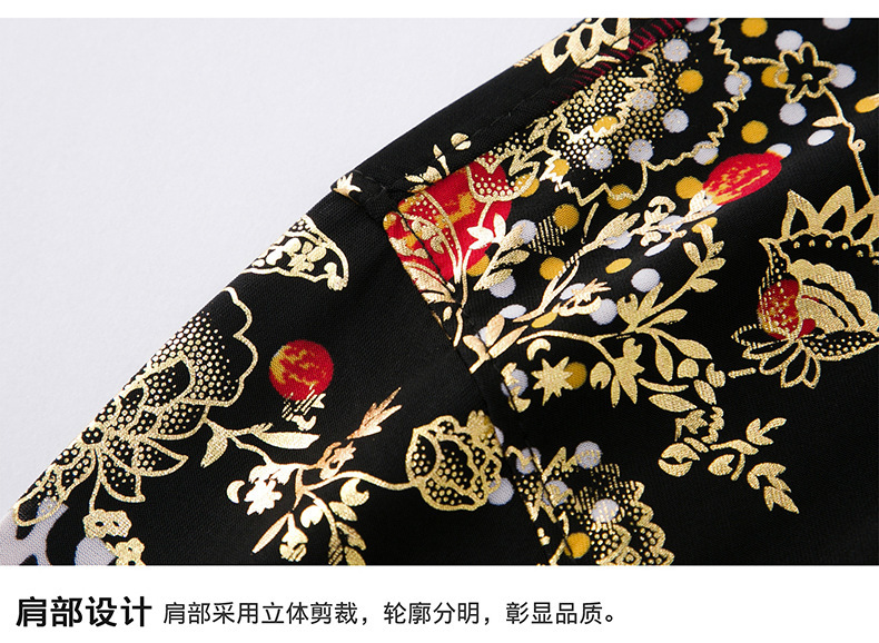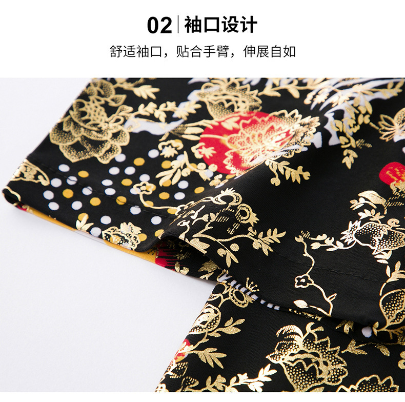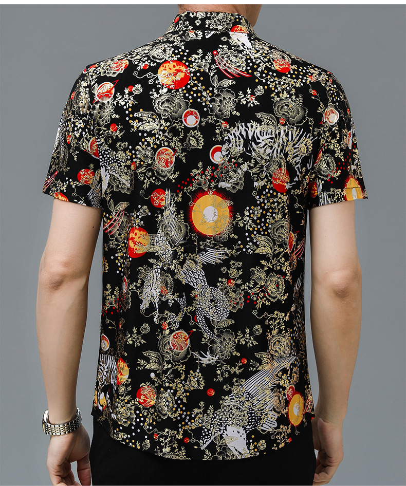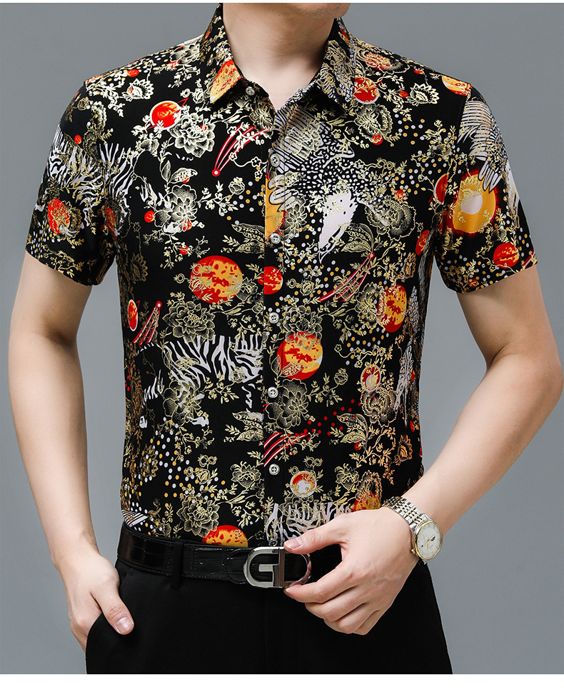 夏季潮流花色免烫休闲短袖百搭冰丝时髦防皱上衣中年男士翻领开衫