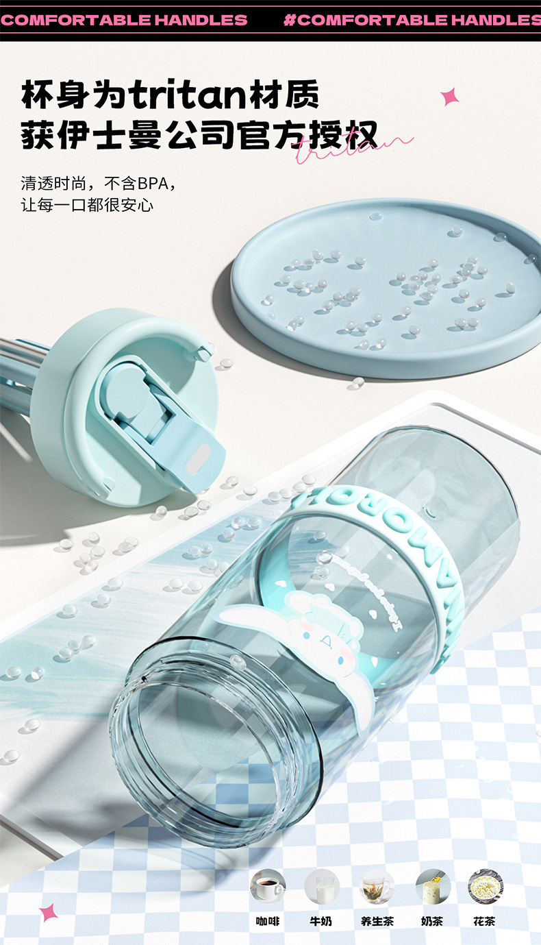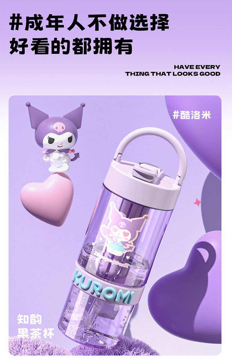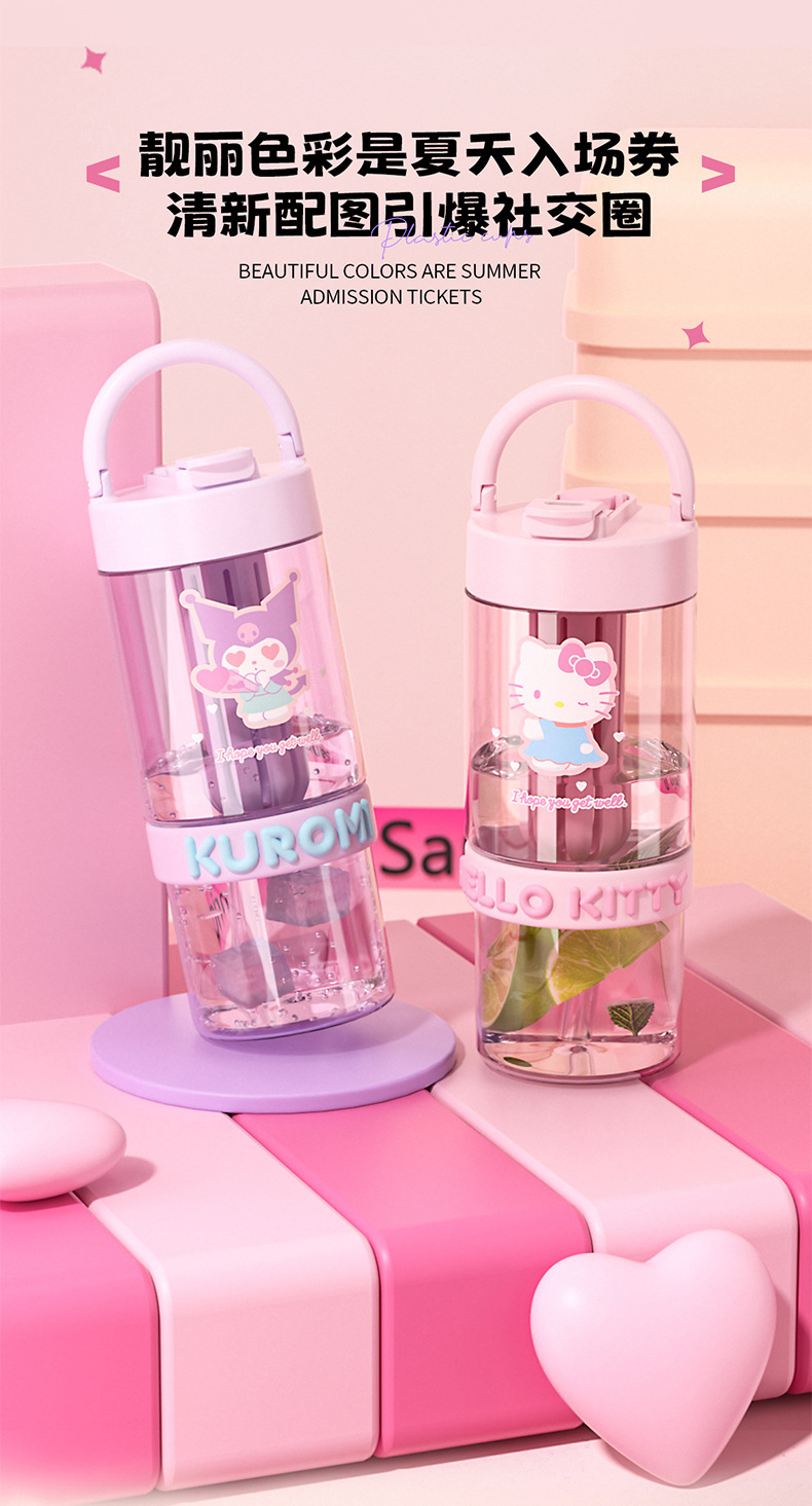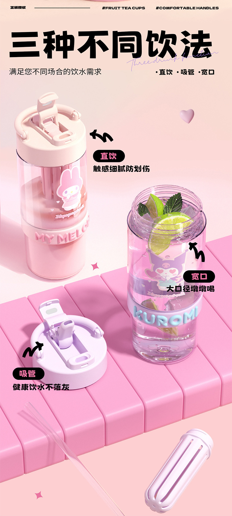 Kulomi Sanrio 남자와 여자의 신들은 라임 과일 차 컵 대용량 공간 플라스틱 컵 트리탄 식품 학년 물 컵을 알고 있습니다.스토어 가기