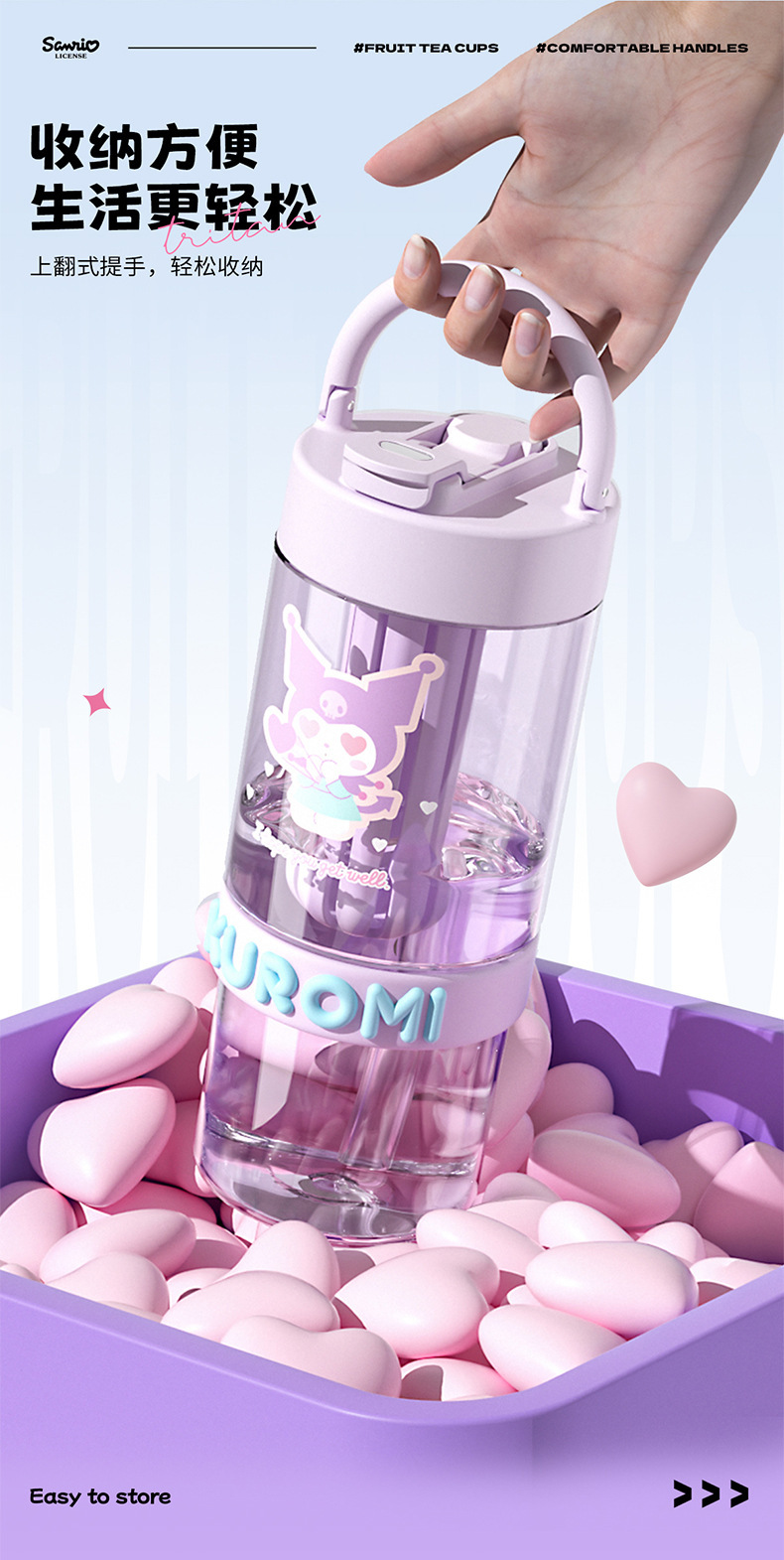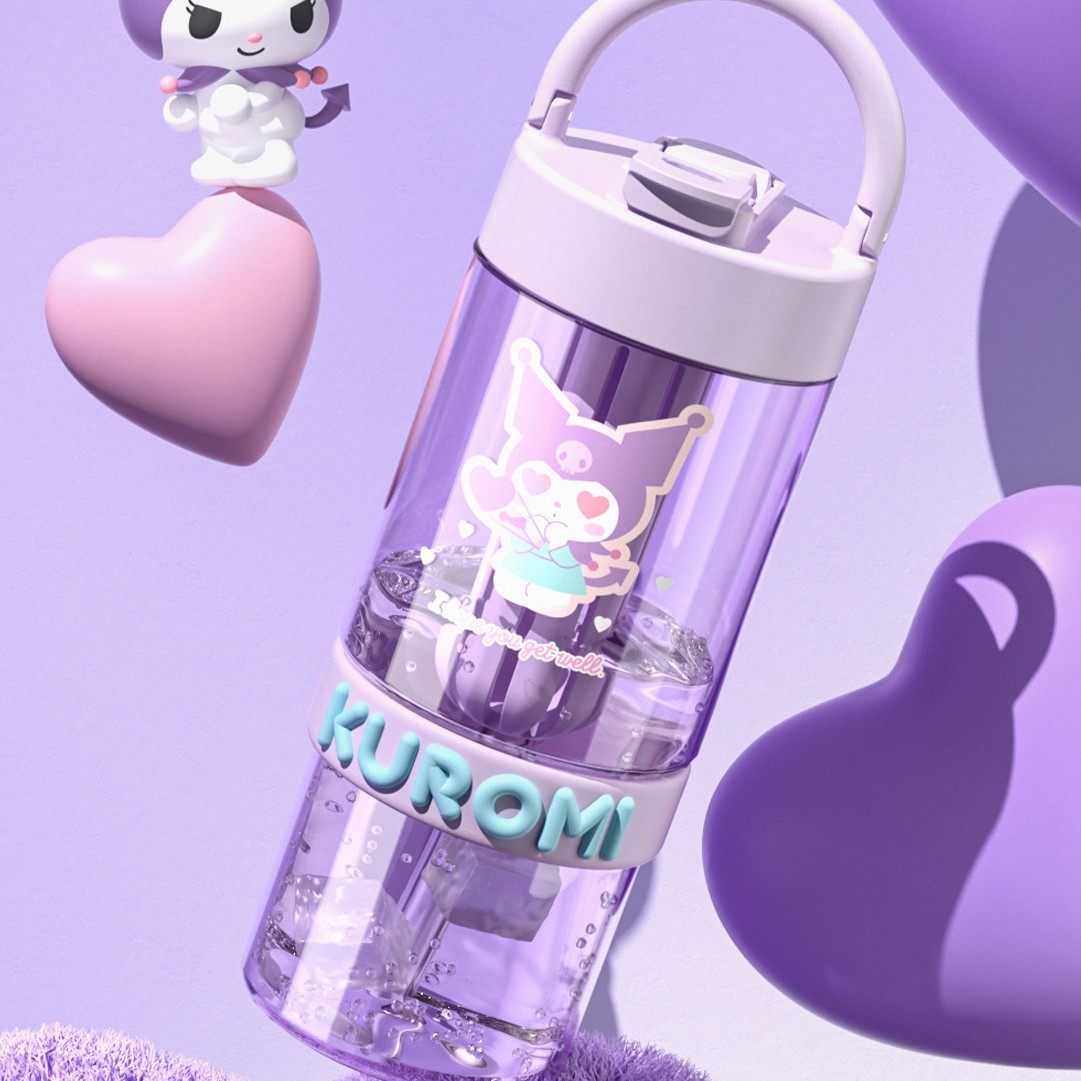 Kulomi Sanrio 남자와 여자의 신들은 라임 과일 차 컵 대용량 공간 플라스틱 컵 트리탄 식품 학년 물 컵을 알고 있습니다.