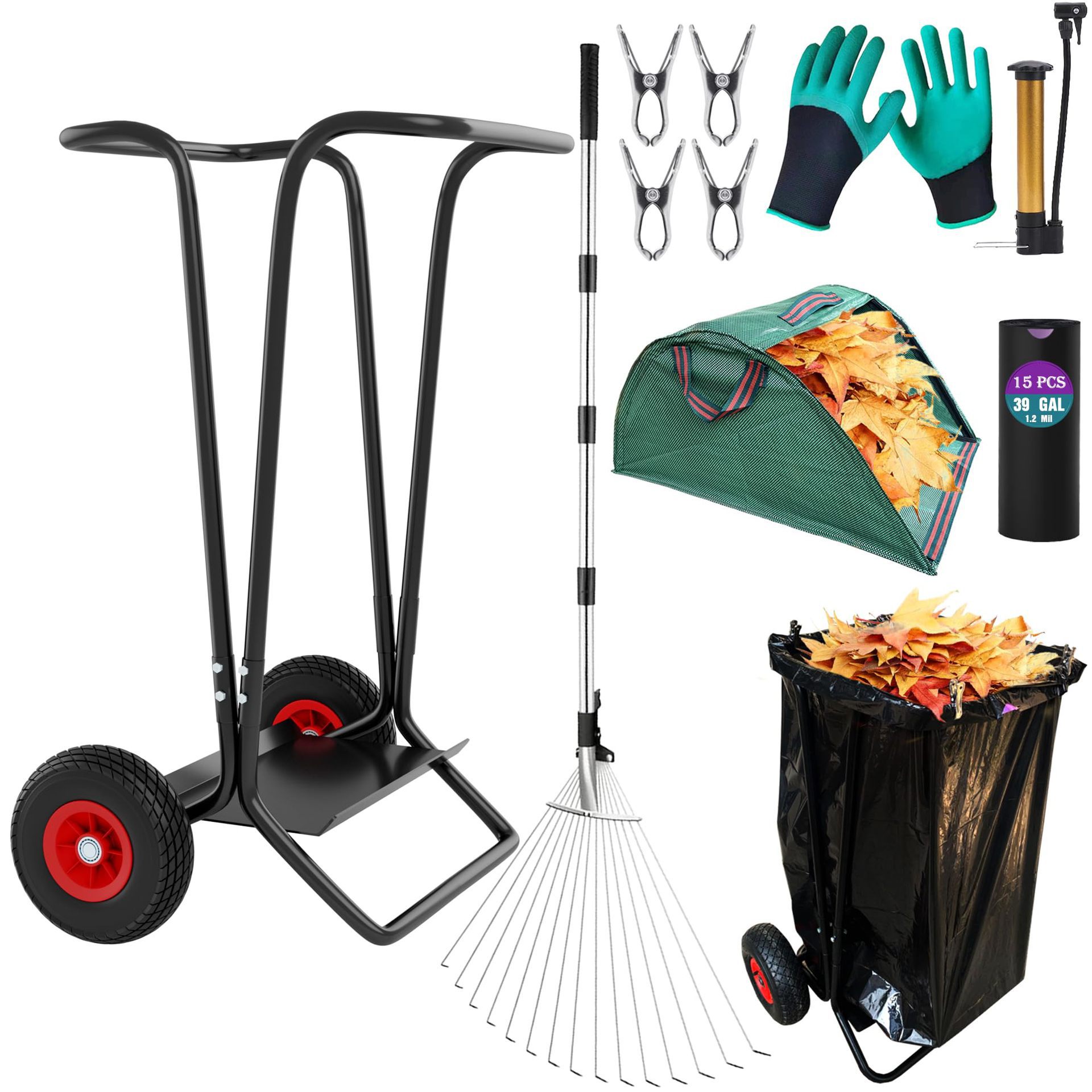 모바일 쓰레기 봉투 랙 낙엽 홈 금속 갈퀴가있는 야외 잔디 낙엽 가방스토어 가기