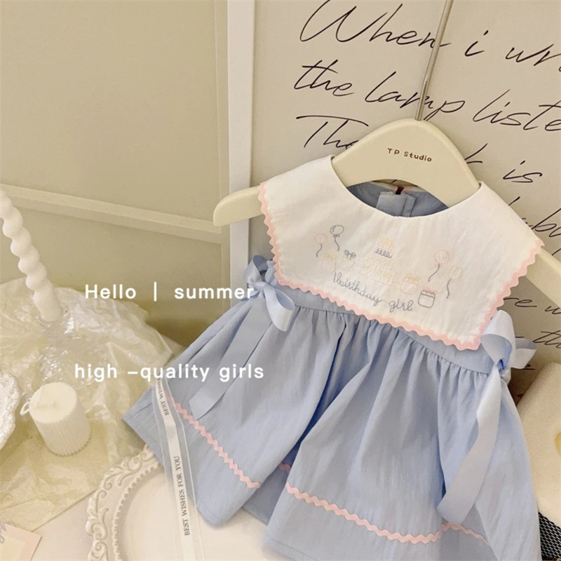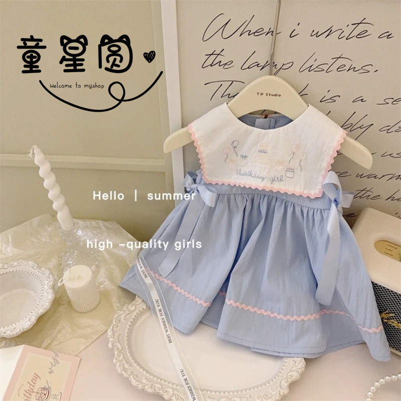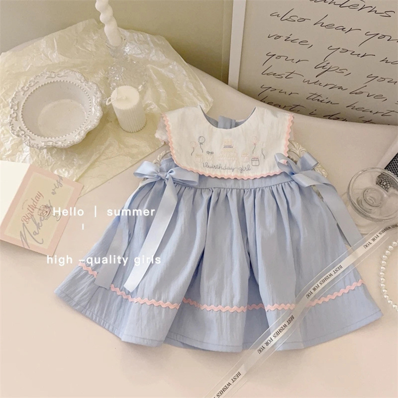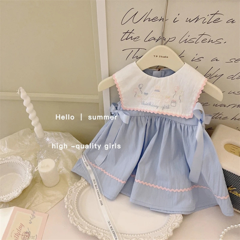 소녀 여름 블루 무거운 자수 스커트 아기 패션 세련된 아이 인형 칼라 선박 스커트 만화 스커트스토어 가기