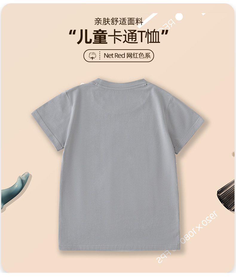 Jusen 아동복 반팔 티셔츠 남자 여름 한국 스타일 만화 단색 어린이 옷 새 아기 반팔 소녀스토어 가기